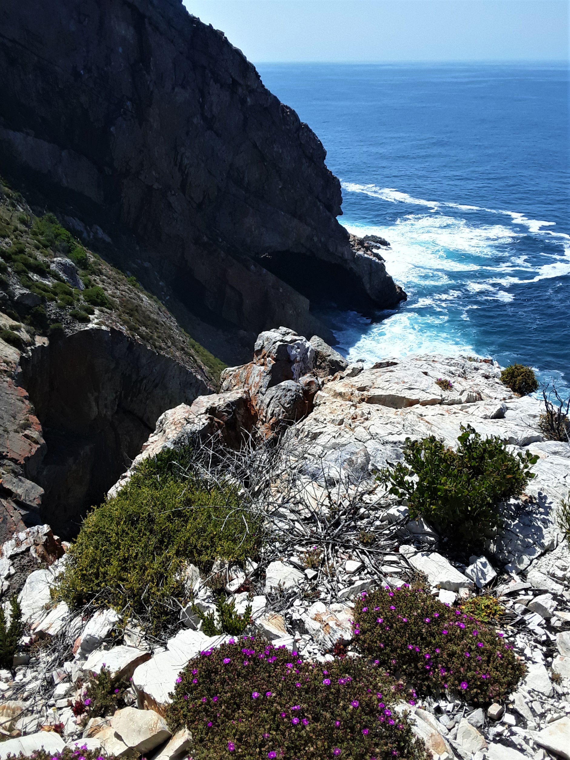 Today I want to show you just how close to the edge my hiking trail brings me on this southernmost shoreline of Africa. Life on the edge is a dynamic place to find yourself, and it means that there is danger at every step. If you are not afraid of heights and don’t mind taking calculated risks daily, then you might actually enjoy this kind of extreme sports activity.