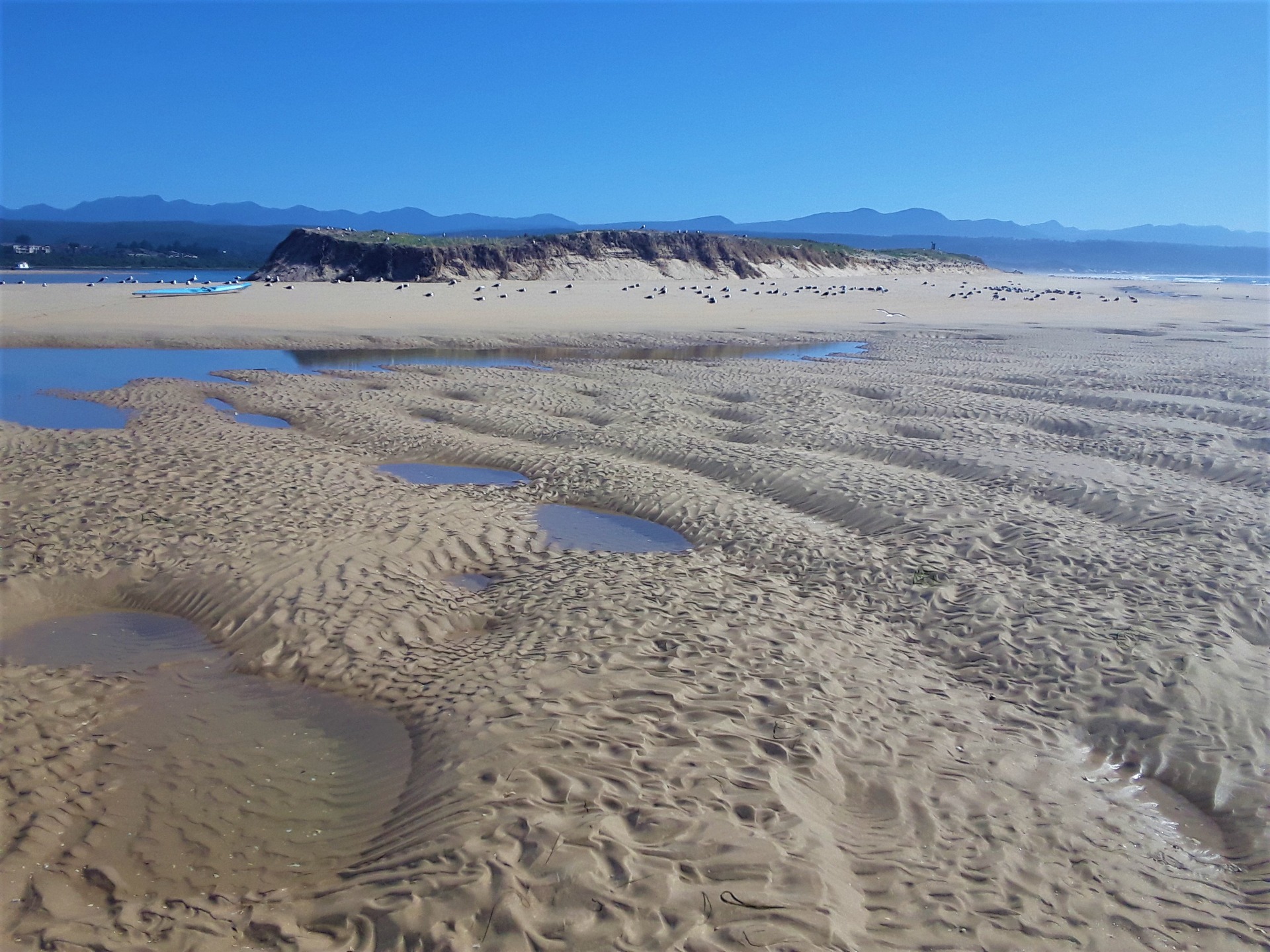 Today I’m on the opposite side of the river mouth from the actual town. You can’t reach this stretch of beach from the town at all, since the river mouth is just too dangerous to cross on foot. You need to drive out of the town and on to the main highway. Then you simply travel east for a few minutes until you come to the road turning right toward the ocean, which will take you to this side of the river mouth.