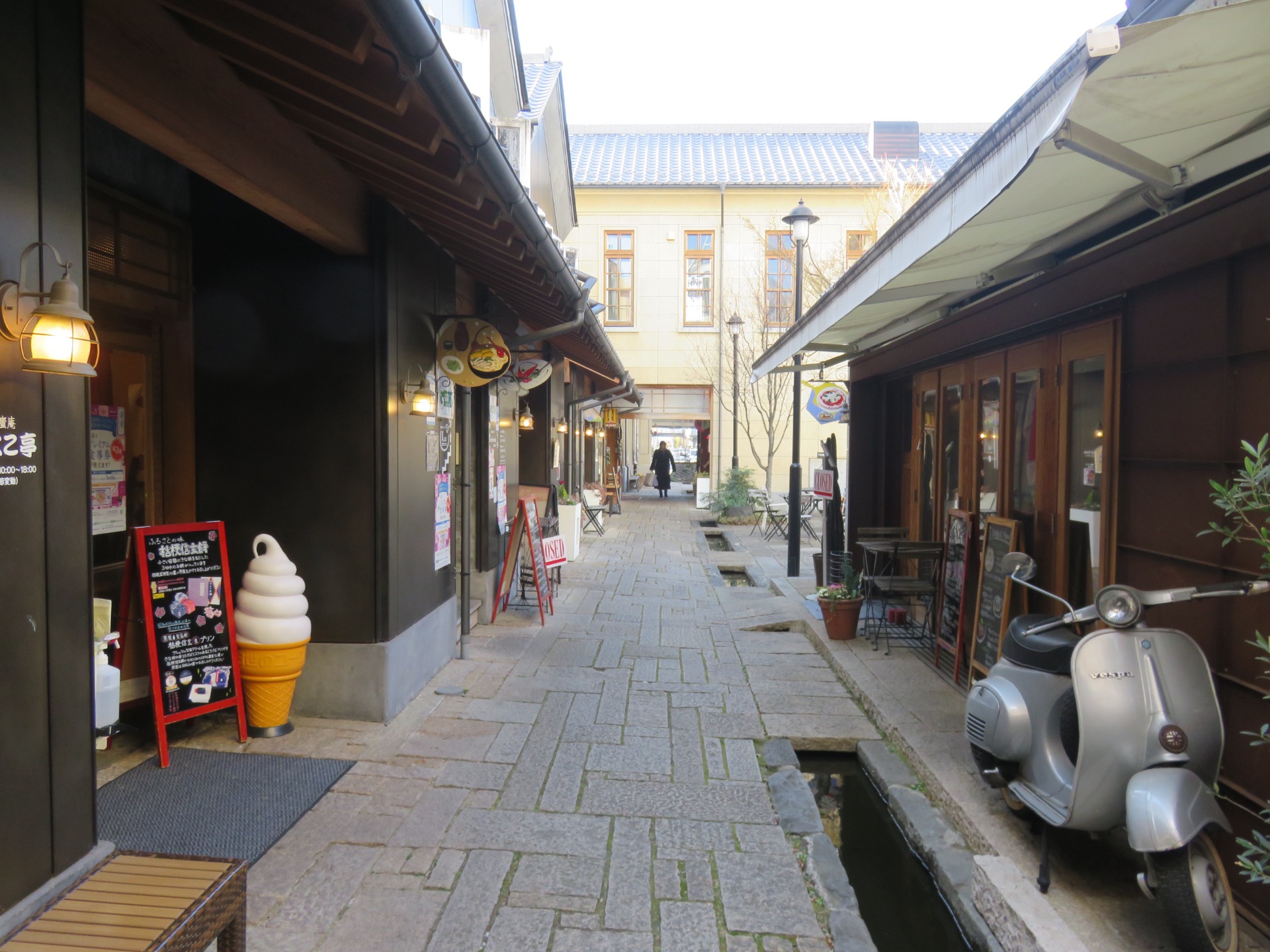 After the winery, we strolled along by the train tracks through the shopping street there. Its about between the castle and the winery and has many old buildings, or buildings that look old, with restaurants, souvenirs etc. That was pleasant to look around too.