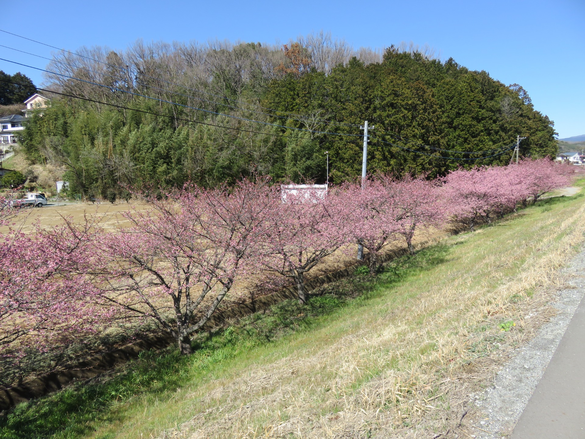 On Sunday, it being a sunny and quite warm day, we decided to cycle to Kannami and see the early cherry blossoms near Hatake Onsen, on the Kakizawa River.