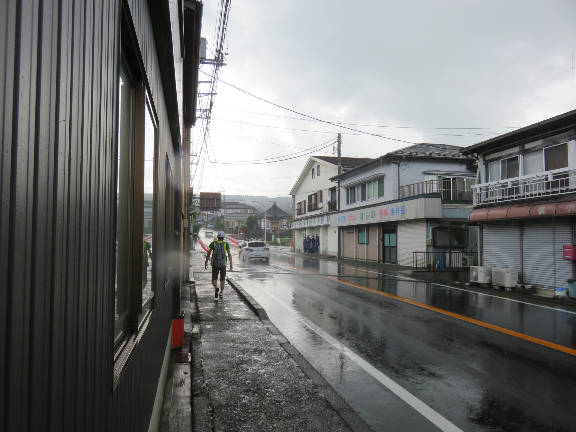 After that, we set up shop just past the 90 degree turn onto the Mount Fuji climb. The weather that day was changeable, sometimes it rained and we had no umbrellas, but a kind neighbor let us use his garage to shelter in and gave us chairs to sit in too! We ate lunch and waited.