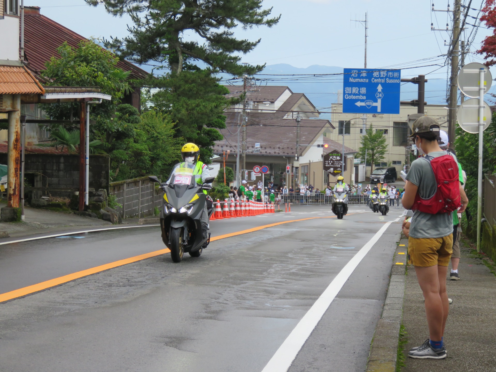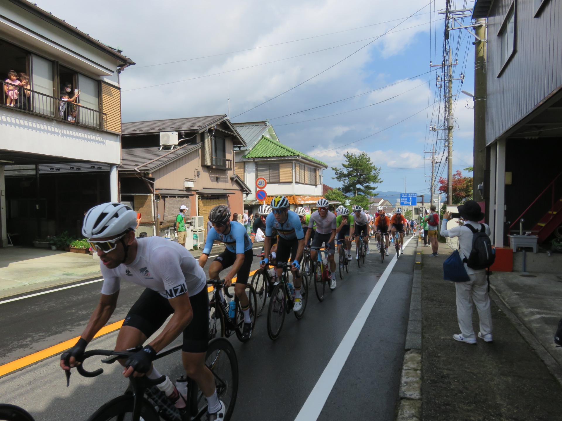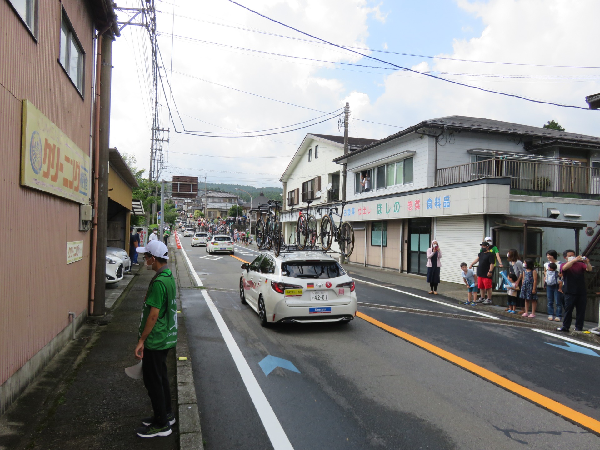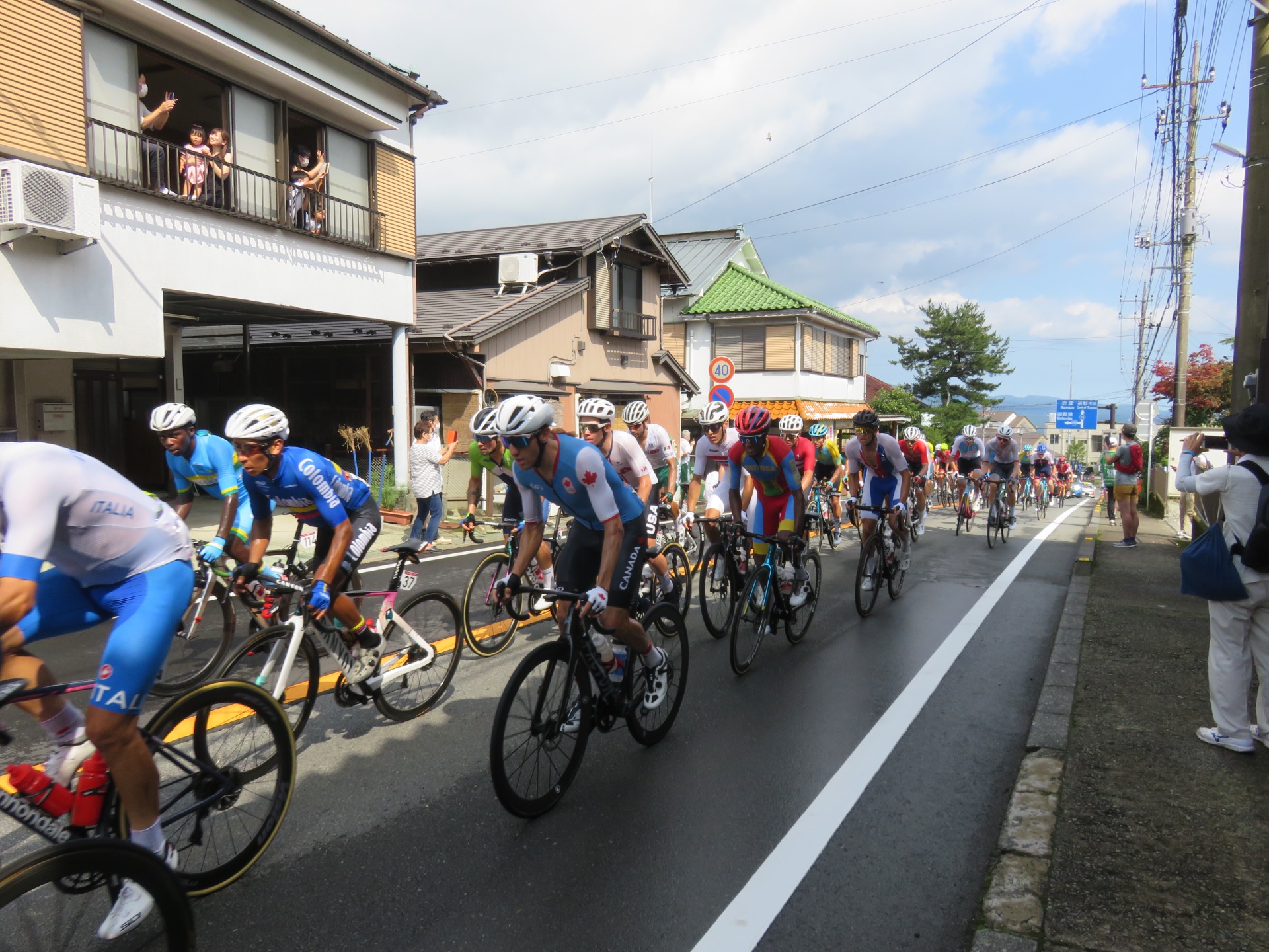 After a while cars started appearing, then many many motorbikes and finally the race. There was a breakaway at the time, so we saw two groups going by. Everyone in the village had come out to watch it. It was like a festival. I actually thought there would be no-one because of the virus, but afterwards I watched the race on TV and saw so many people watching the race going through Tokyo. Hehehe.