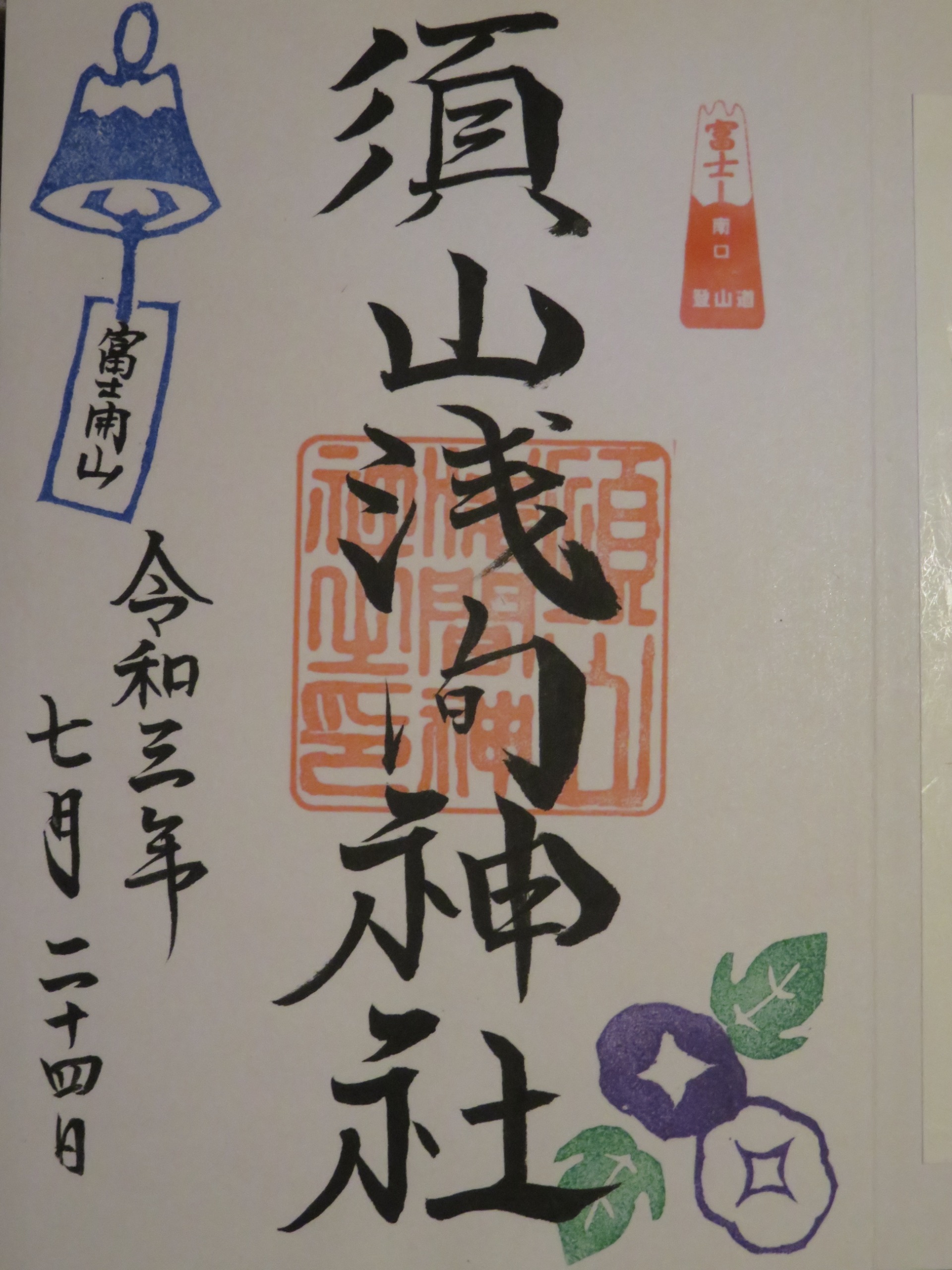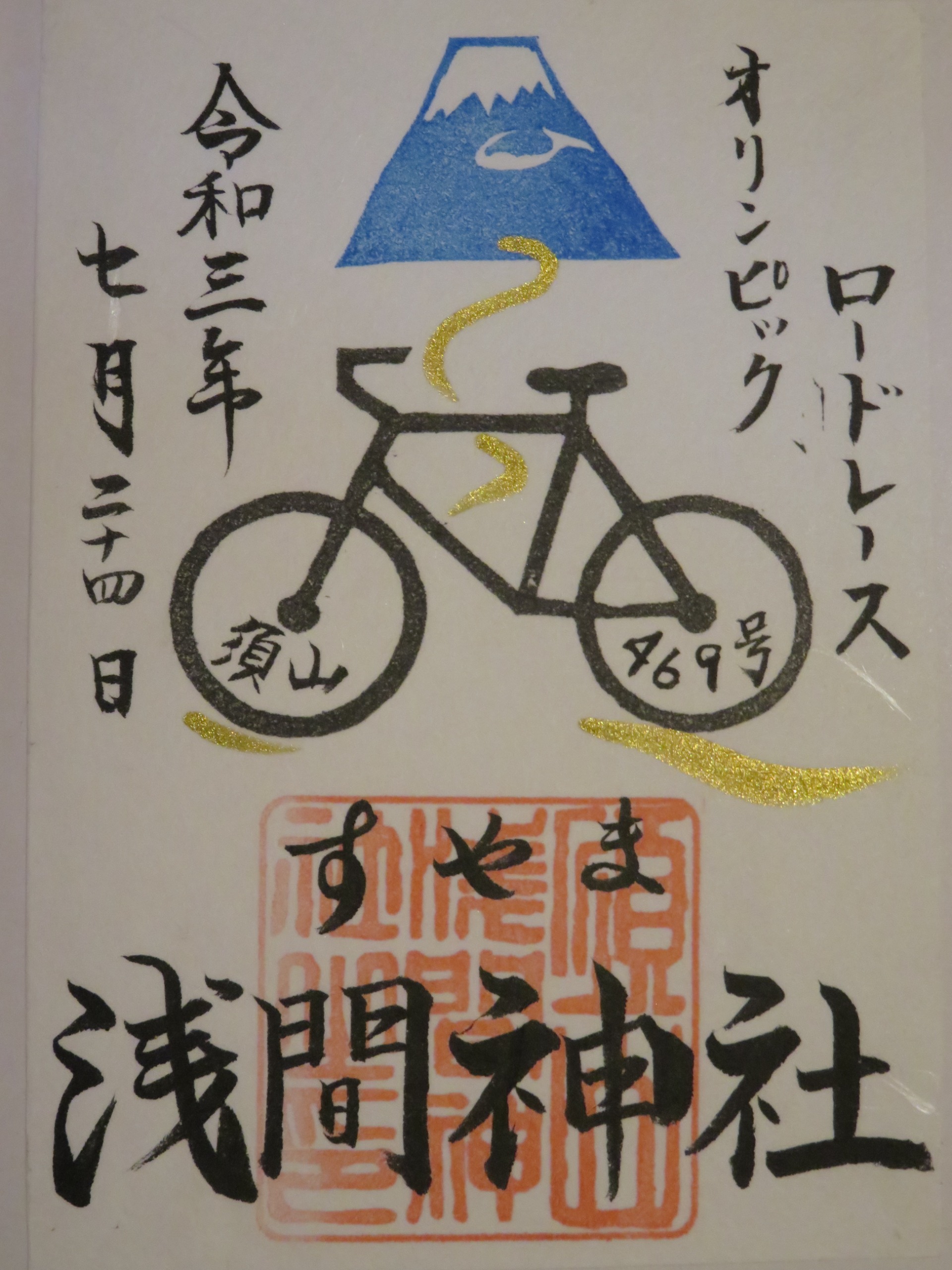 Anyway, we got there at about 11.30 am. The race was due to go through at 2.30pm, but the roads were being shut at midday, so we found a convenient car park, actually the car park of the shrine in town. After that we walked to the shrine. Its called Suyama Sengen Shrine. There were volunteers all over town and the large, forested shrine was no exception, but we got a special shrine stamp on top of the ordinary one, which was very lucky.