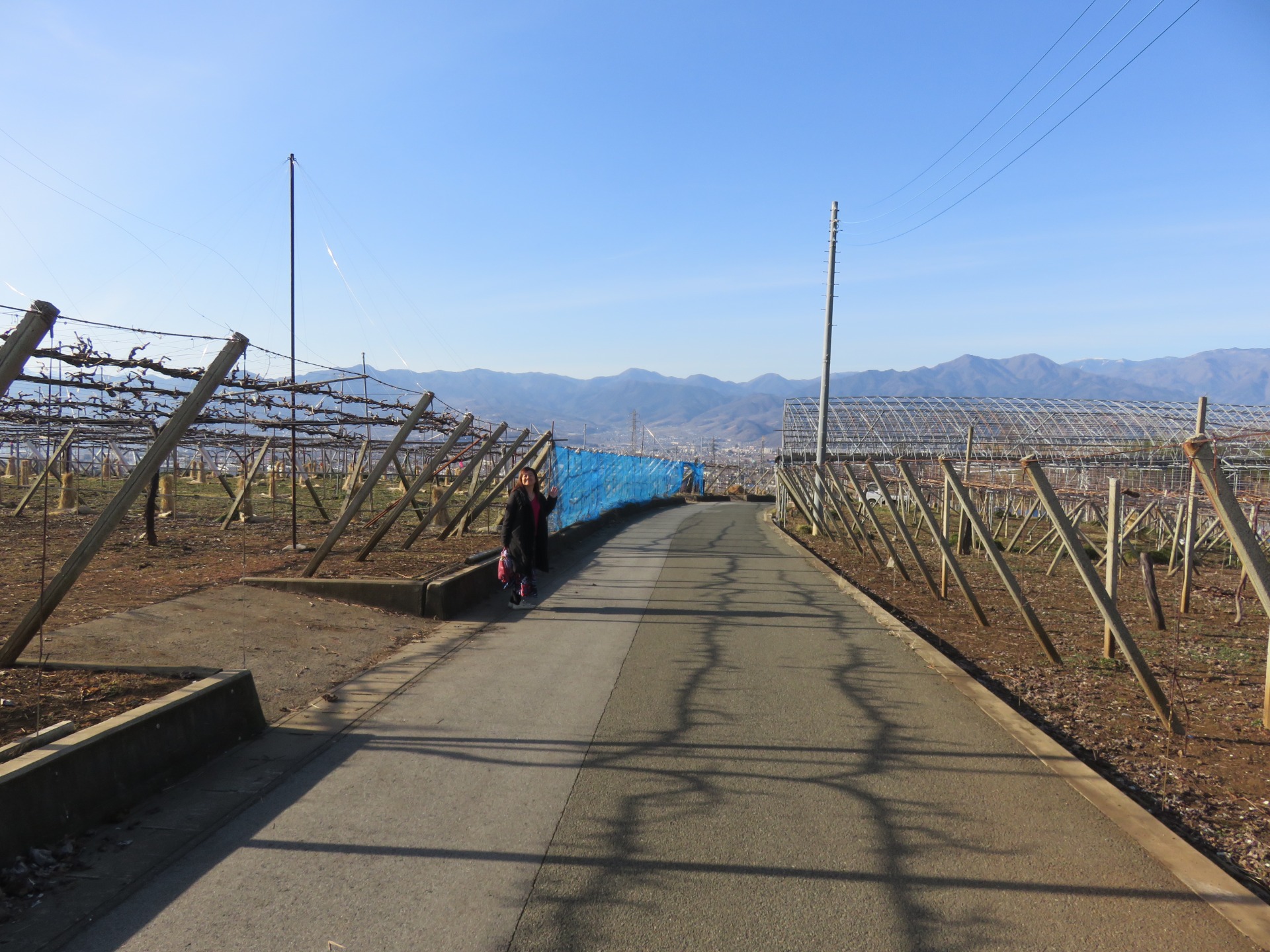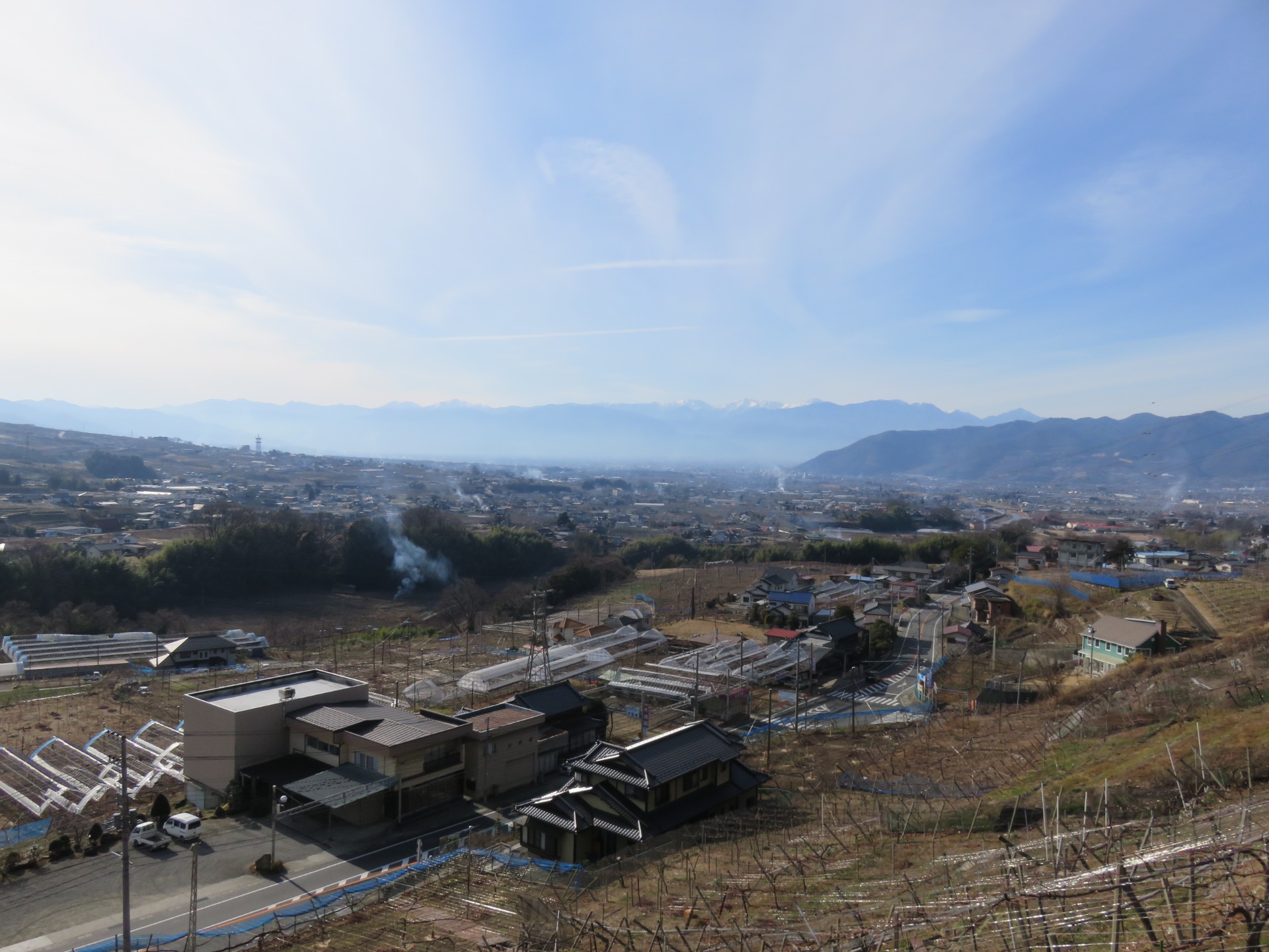 With a lot of walking and drinking under our belts, we took the little high road back towards the station. I really don't like the Japanese attitude of trying to destroy the Earth as quickly as possible, but here you can see one example of this, the fires from the vineyards, burning the old branches, something that's illegal in the UK, was happening all over the valley, and the smog hovering in the distance. Apart from that it was a nice view.
