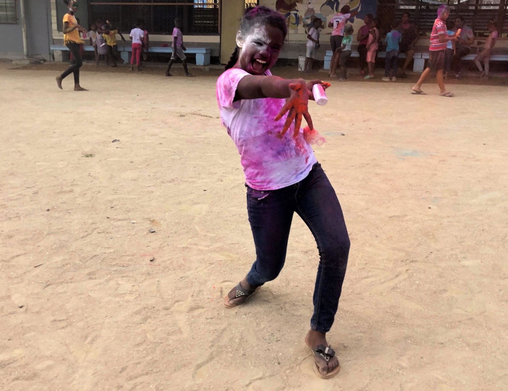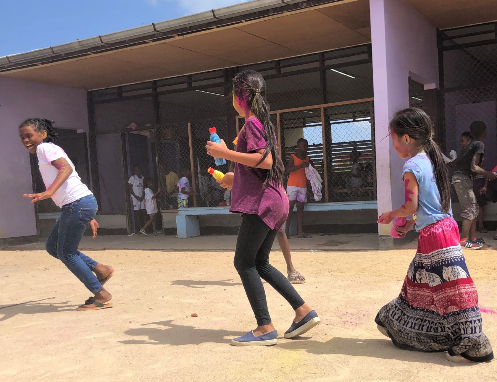 With phagwa blasters prepped and ready for action, it was time to turn the students loose and let them enjoy themselves. I hadn't been surrounded by so much laughter and good vibes in a few years, and the experience was already beginning to feel like a personal healing of some sort. Sometimes the best medicine is not herbal or synthetic, but produced within the human body itself.