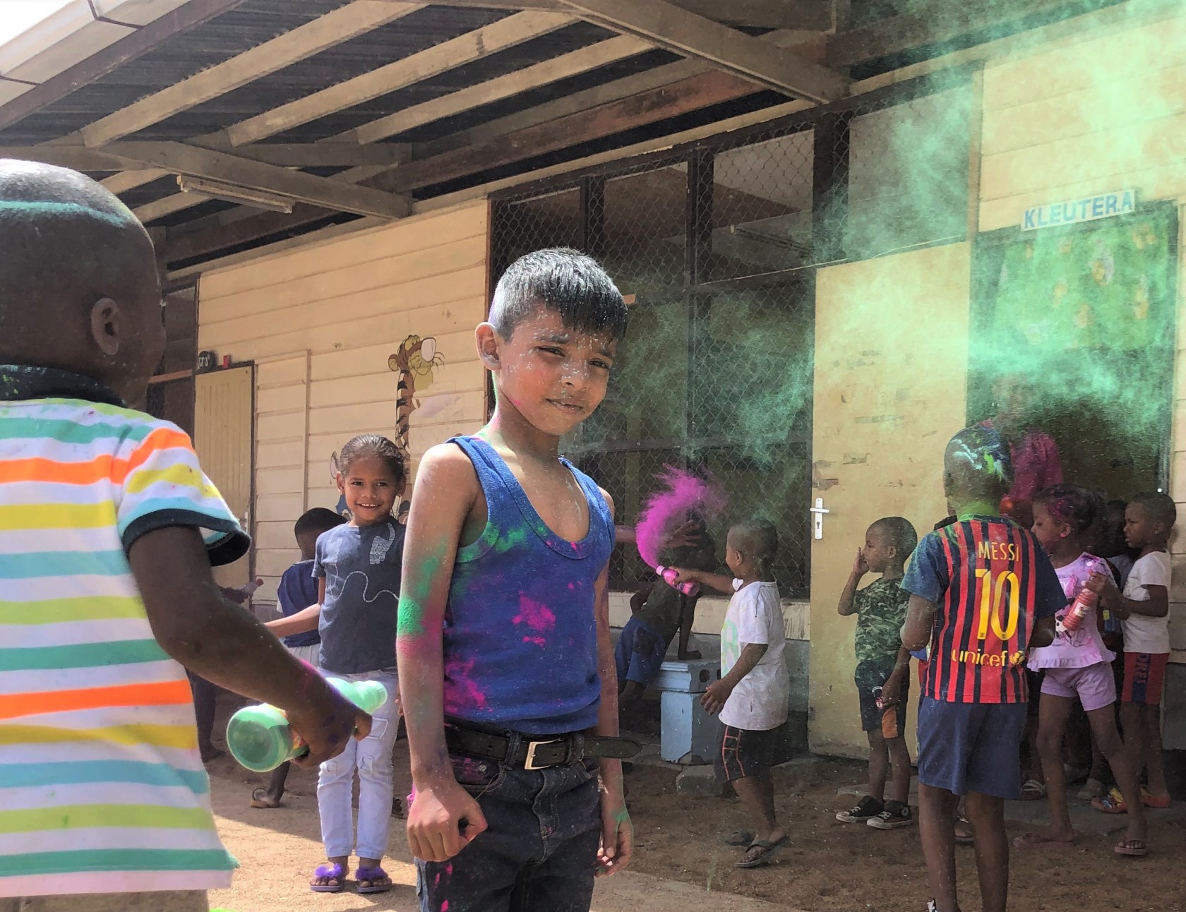 Even though the majority of Indian descendants are actually Christians here in Suriname, Holi is still celebrated by both Christians and Hindus. In fact, the whole entire country takes part in Holi regardless of ethnicity, religion or class. It is magical to witness, and even better if it's at public school among the youths of Suriname.