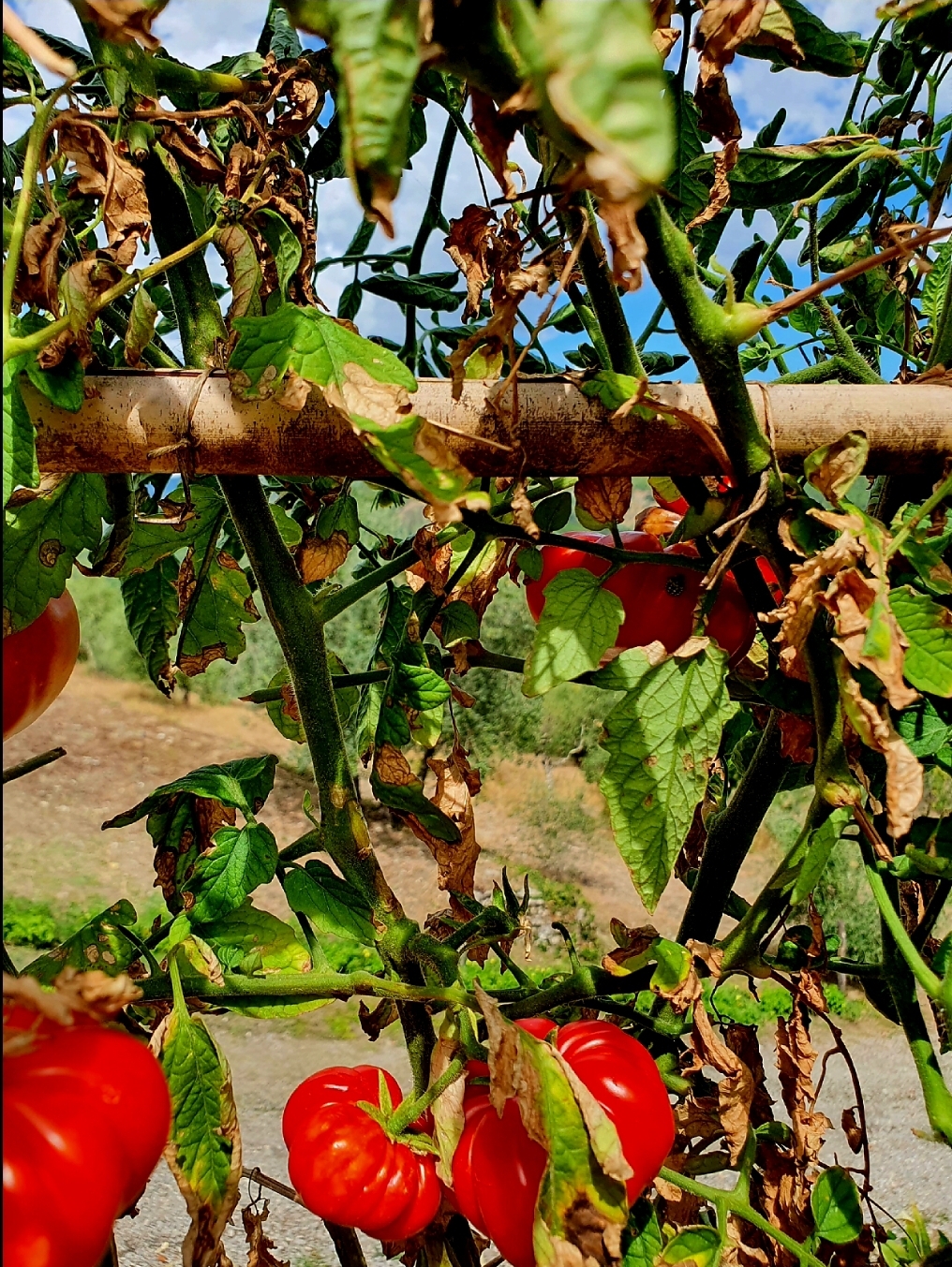 But why all these things taste so good here in Italy has to do for sure with the climate and the local production of things. When you see for instance how the tomatoes are growing here on the picture beneath, you can imagine that the flavor and taste of these pomodori tomatoes is just crazy good.