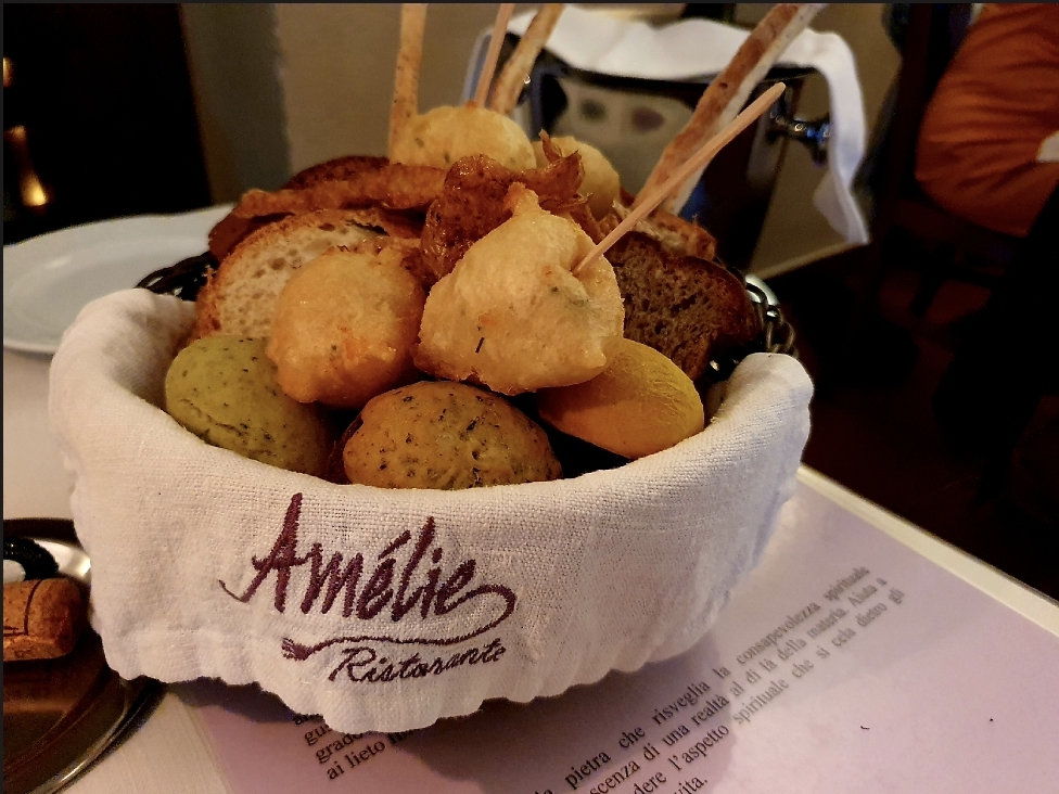 The whole experience of eating at Amelie restaurant was just really good. Super friendly staff with fantastic food, and in such a small place hidden in the back really had a different vibe over it than the mass tourism in the rest of Baveno at Lago Maggiore.