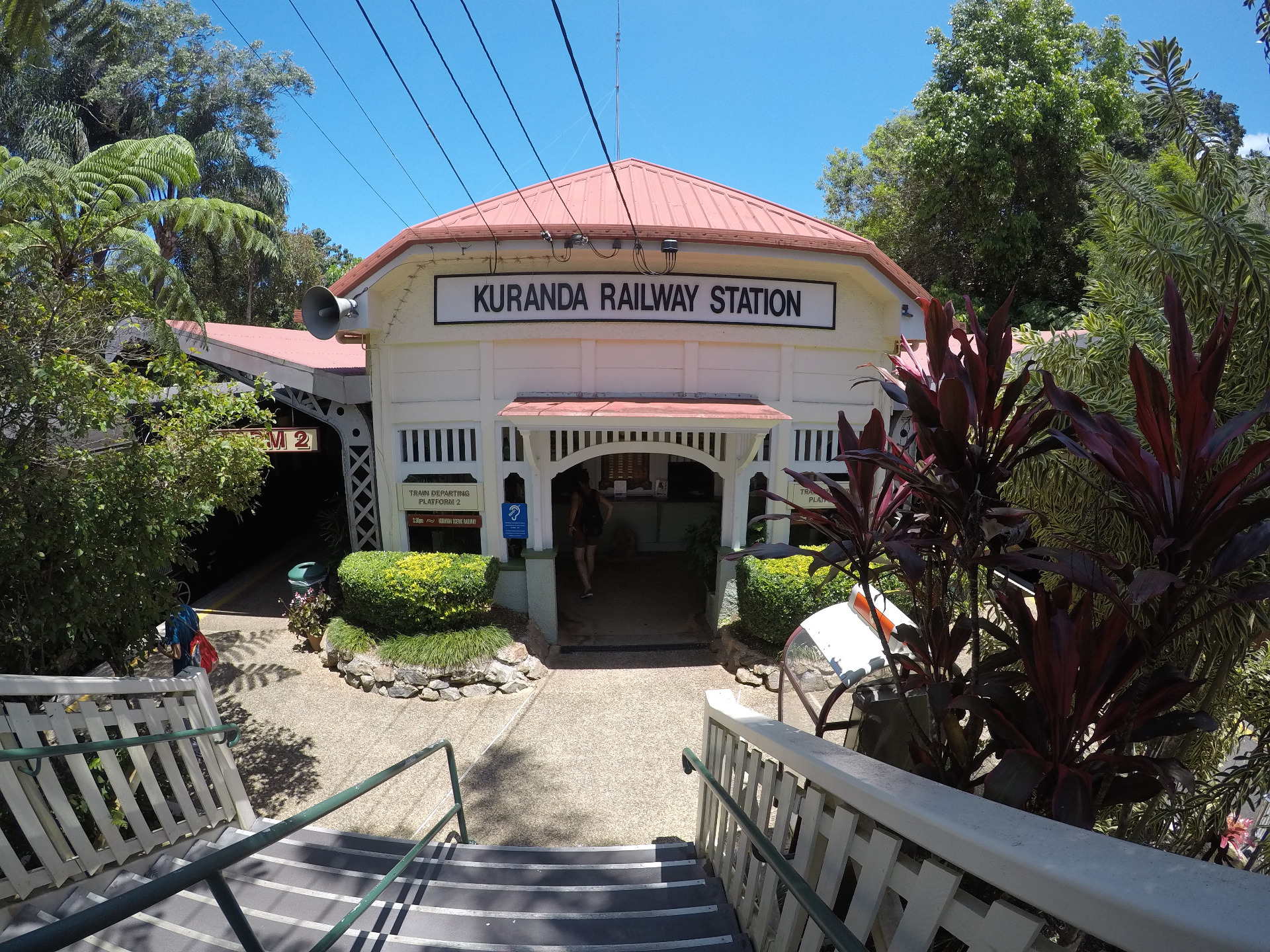 The highlight at the end of our tour was a ride on the Kuranda Scenic Railway. The train station of Kuranda is a sight in itself. He is over 100 years old and is practically next to the cable car. The train journey took about 1.5 hours. The train looked very nice from the inside, it had red seat cushions and nice brown polished wood.