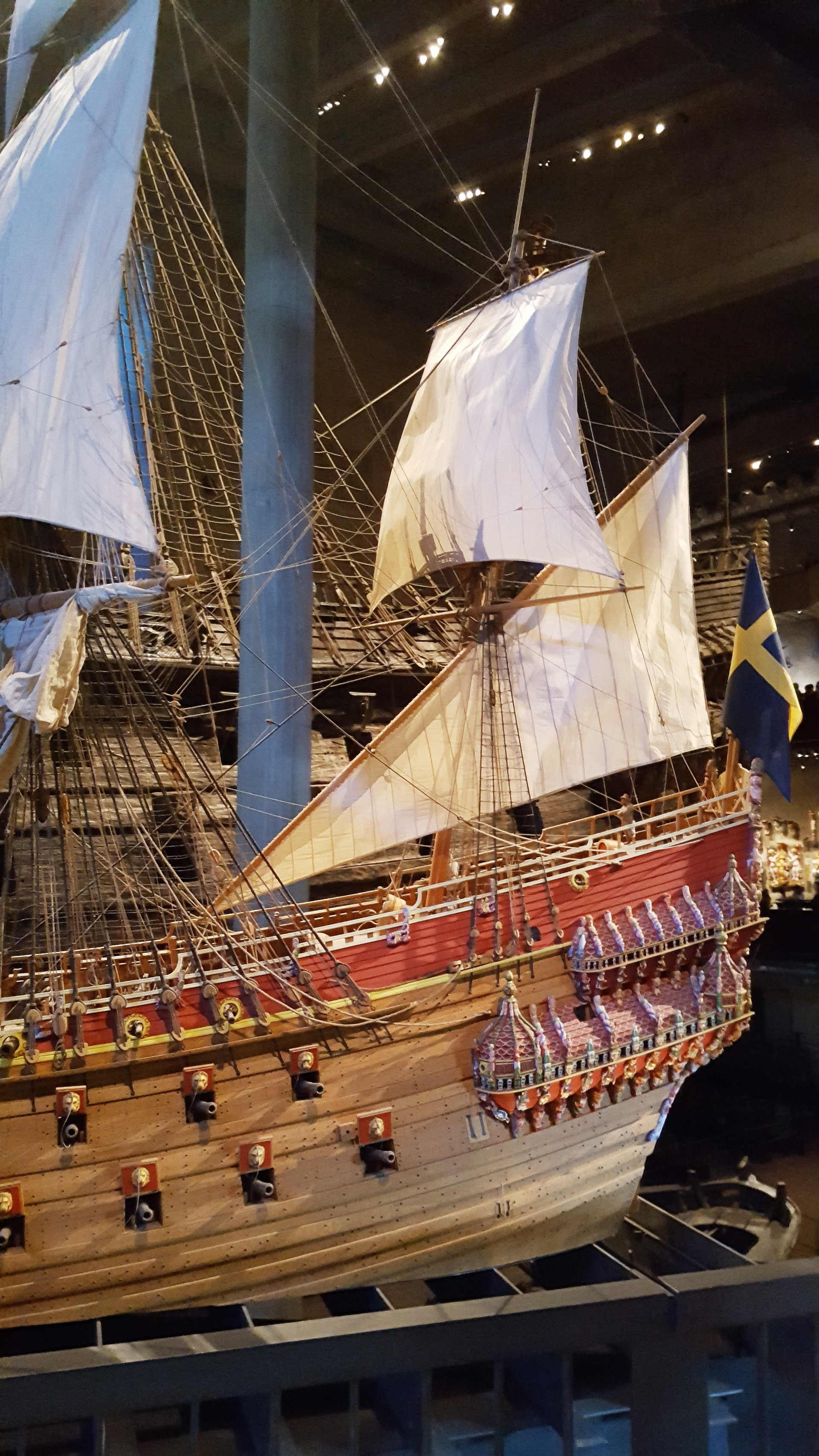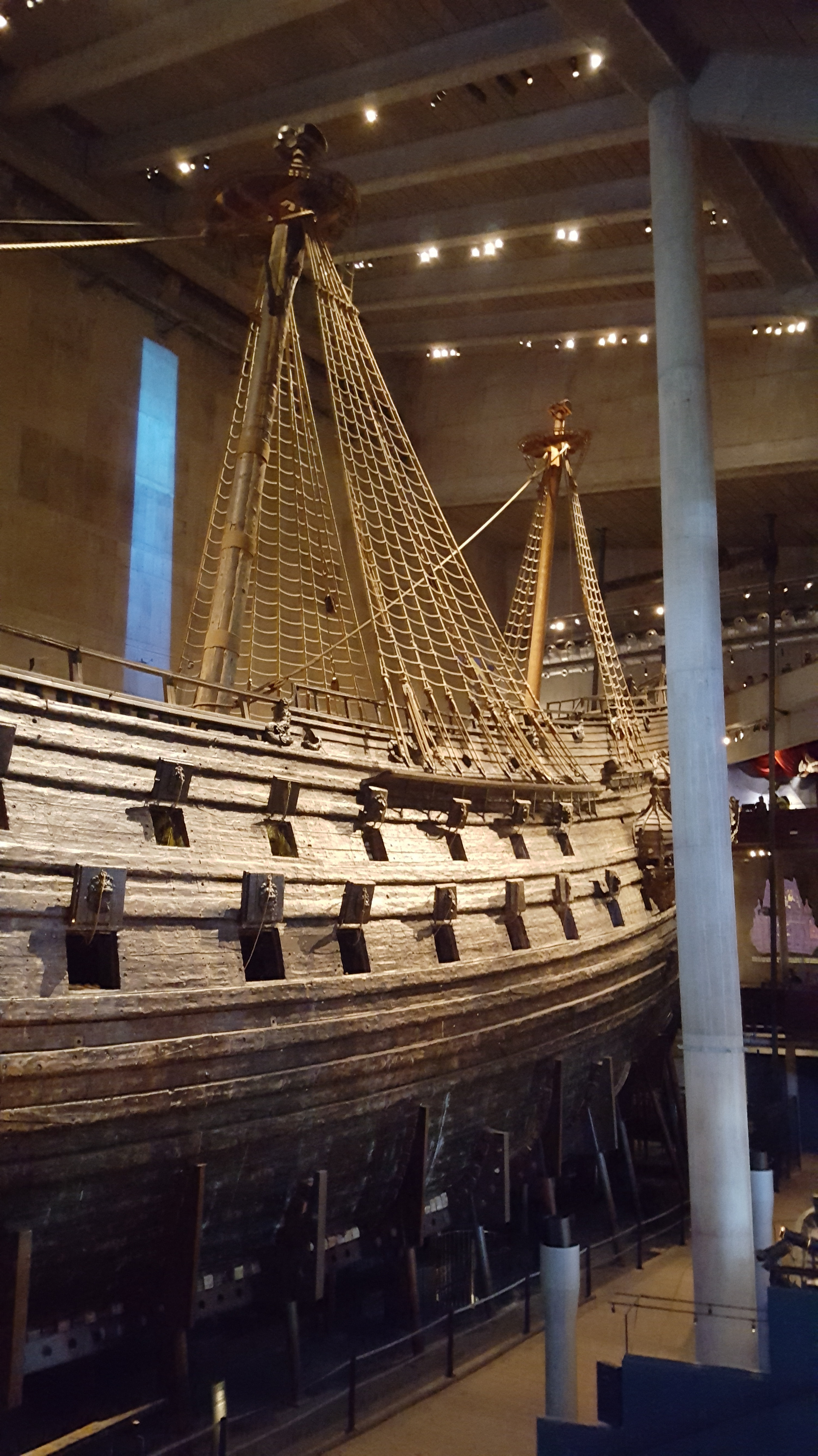 Because the Vasa had sunk in the middle of Stockholm and thus sunk in brackish water, it could still be salvaged in very good condition. Because the water in the Baltic Sea is not very salty. For this reason, wooden ships can lie here for centuries without being completely destroyed. The shipworm, which otherwise always drills the ships, is not at home here because the water is not very salty. So lucky!