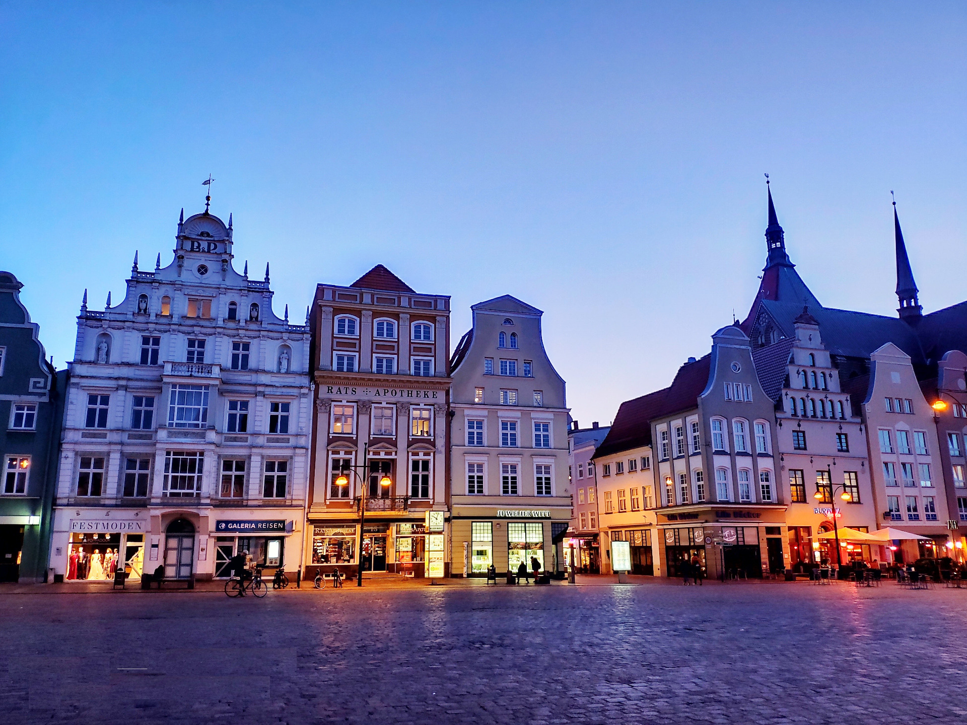Which surprised me: We were able to see all the important sights that evening, even though we had only been on the road for two hours and in the meantime we had some kebabs ;) There you really didn't feel lost! But I find it very nice. What I liked best was the famous market place of Rostock and the old colorful houses (you can see them on the first picture). In the dusk the colors looked incredible and the illuminated shop windows cast beautiful shadows into the darkness. Okay, now I'm getting a bit too poetic ;)