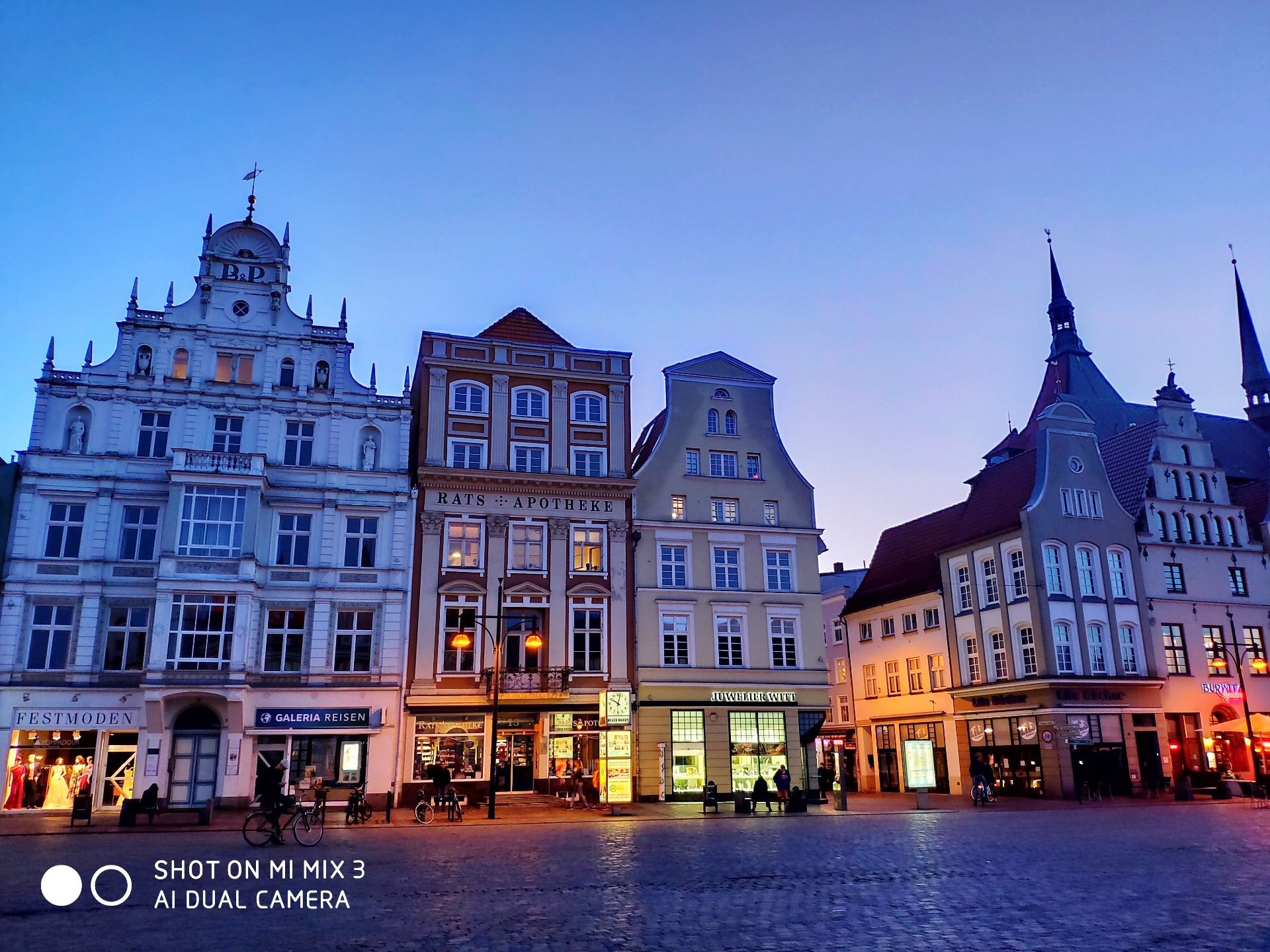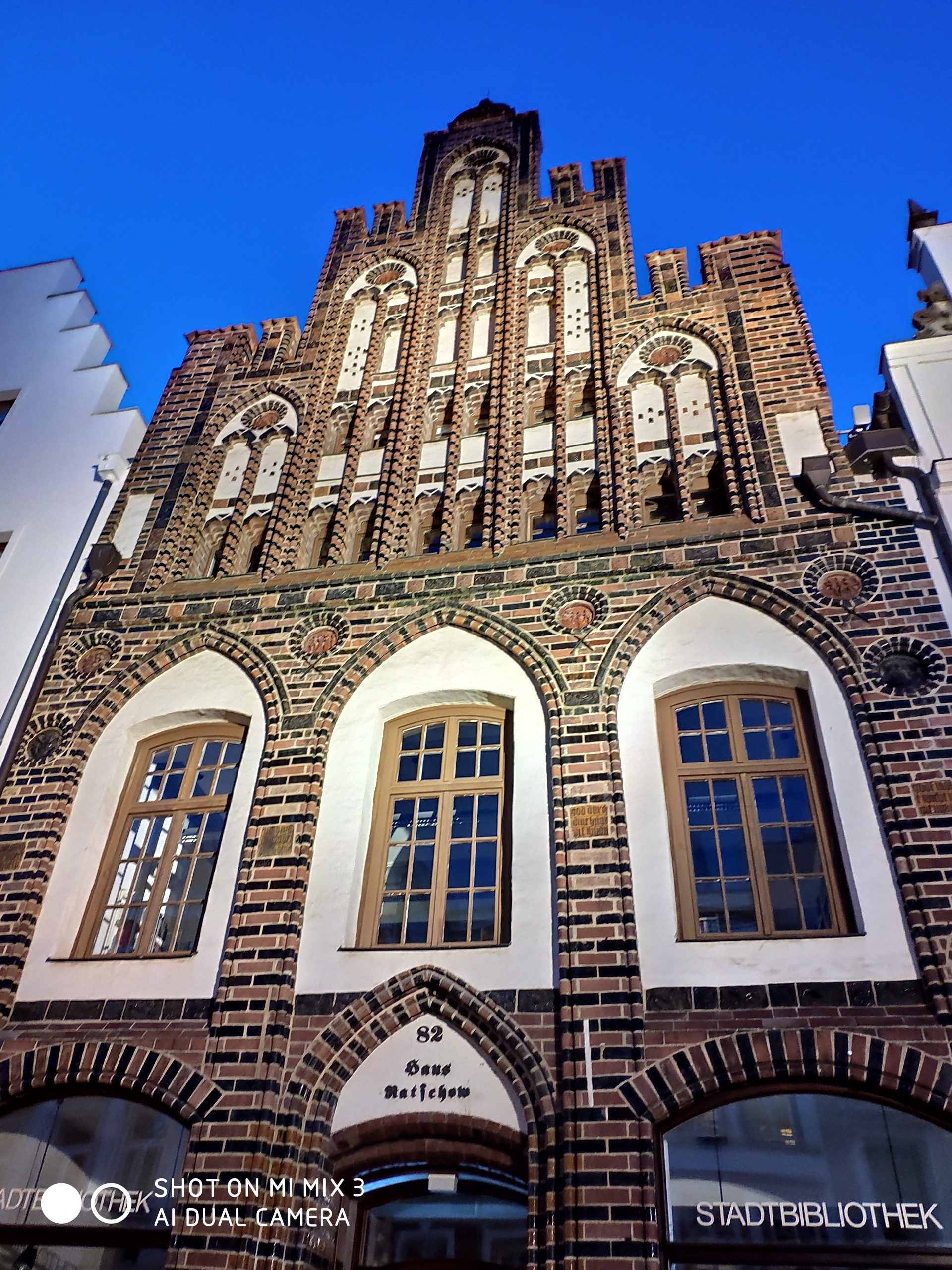 First I went to my sister's apartment, which is about five minutes walking from the center and about two minutes to the harbor. There we unloaded our stuff (it was also shcon early evening) and took a little walk to the old town of Rostock and later to the harbour. As you can see on the pictures it was already quite dark, but I think the pictures are still very nice, the night mode of my mobile phone camera is really great (Xiaomi Mi Mix 3).