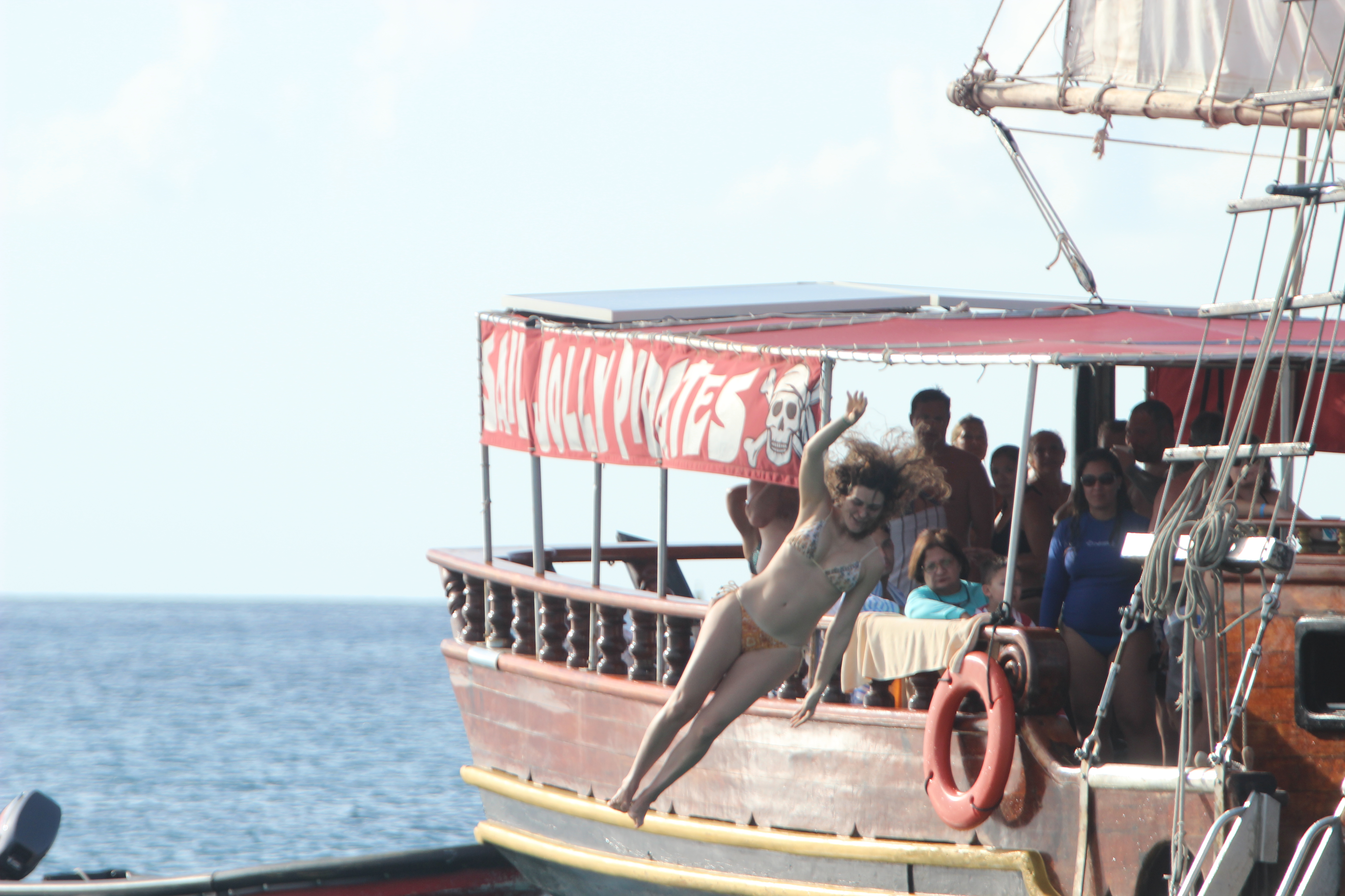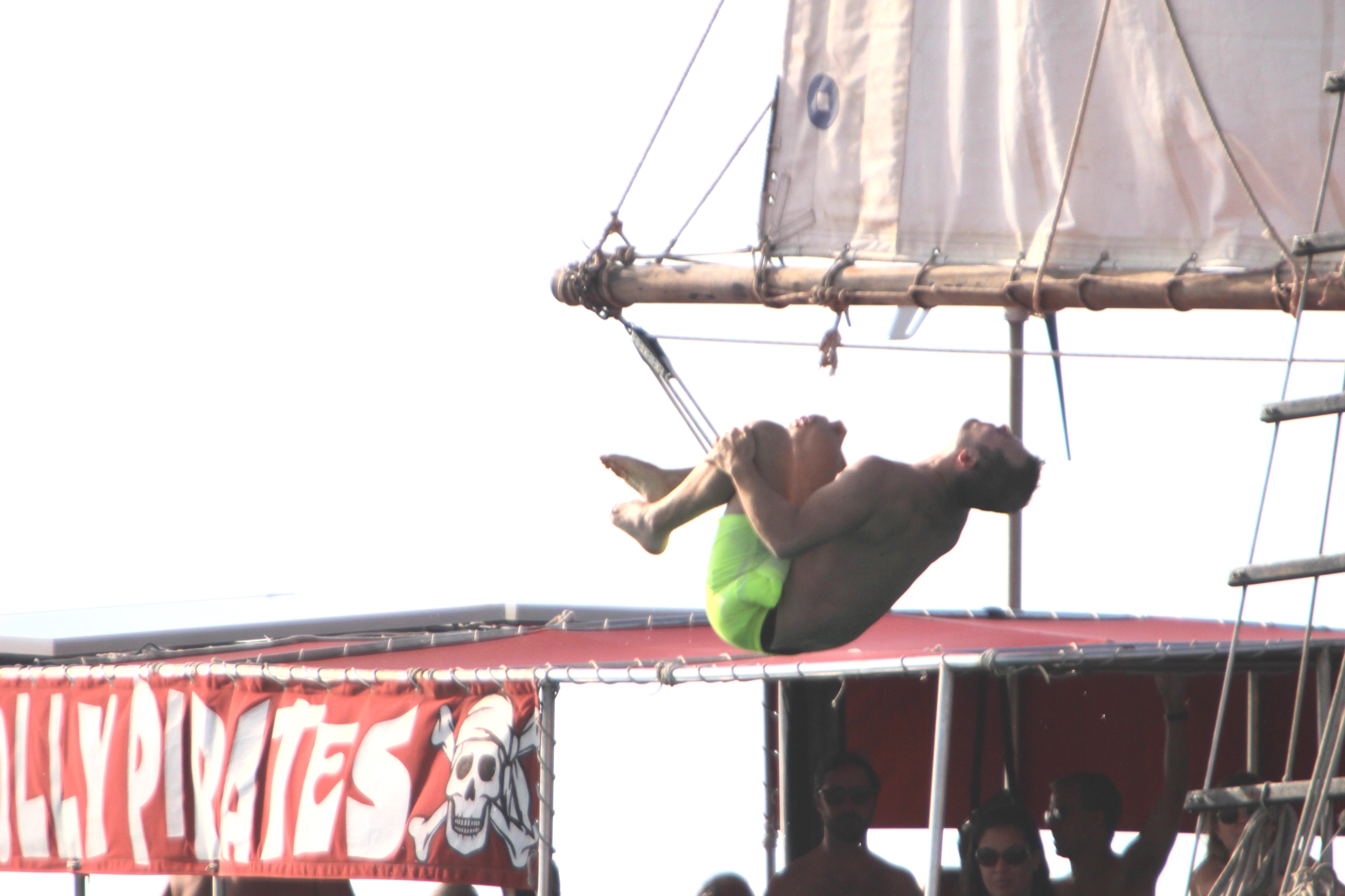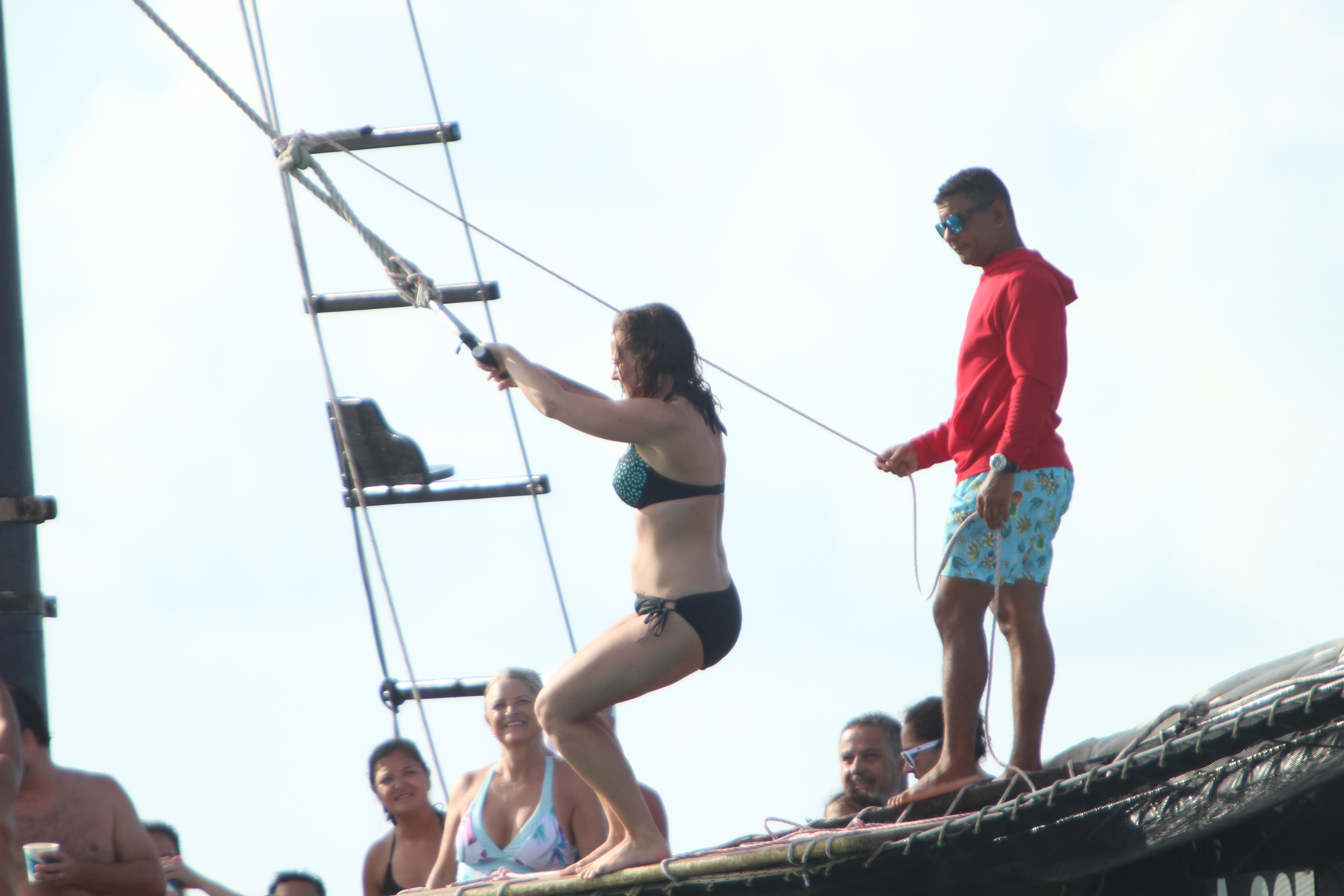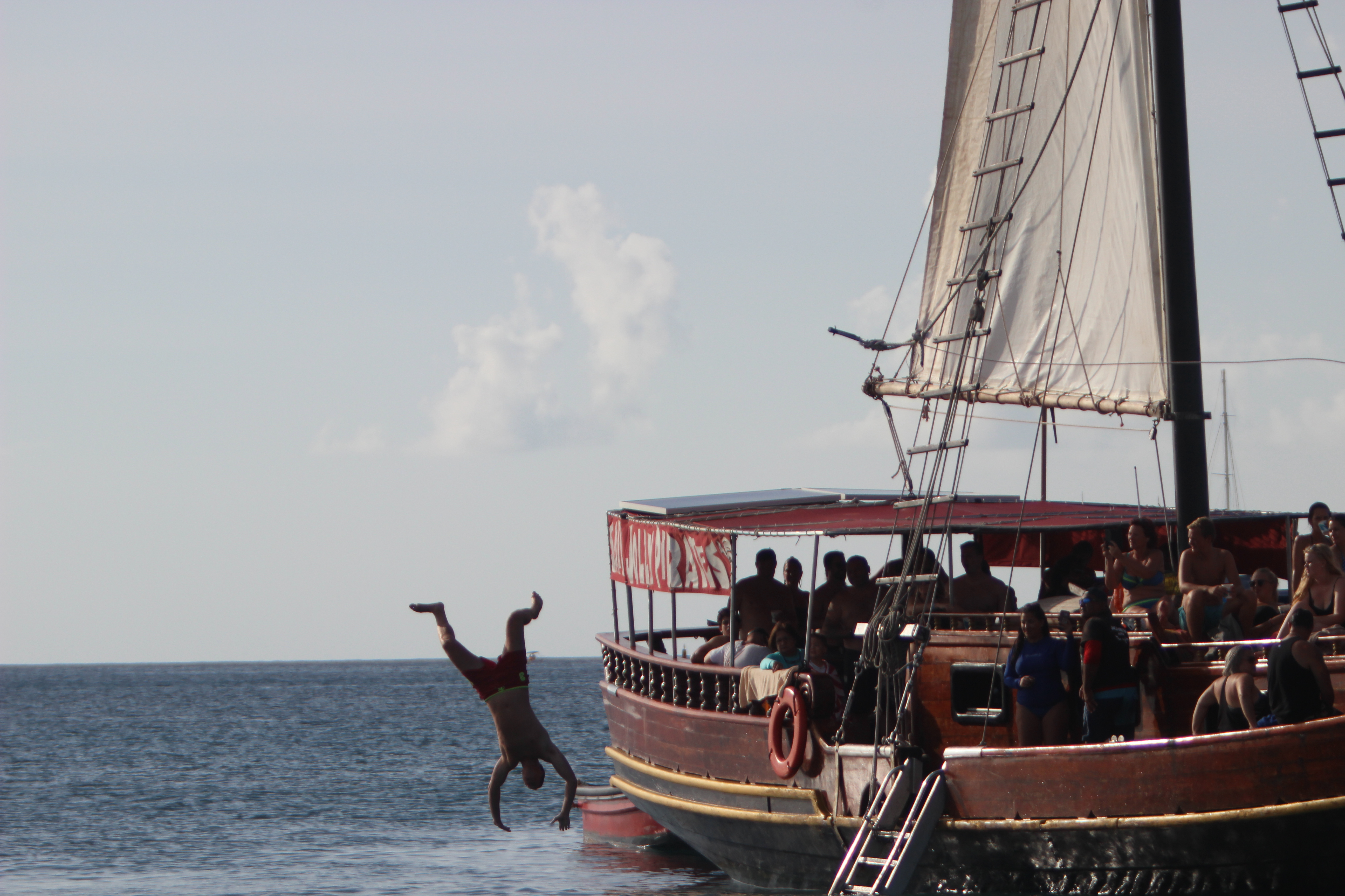 At this same spot this ship was there and people were swinging off the side and swimming around. From the sounds of laughter and cheering, they were having a great time.