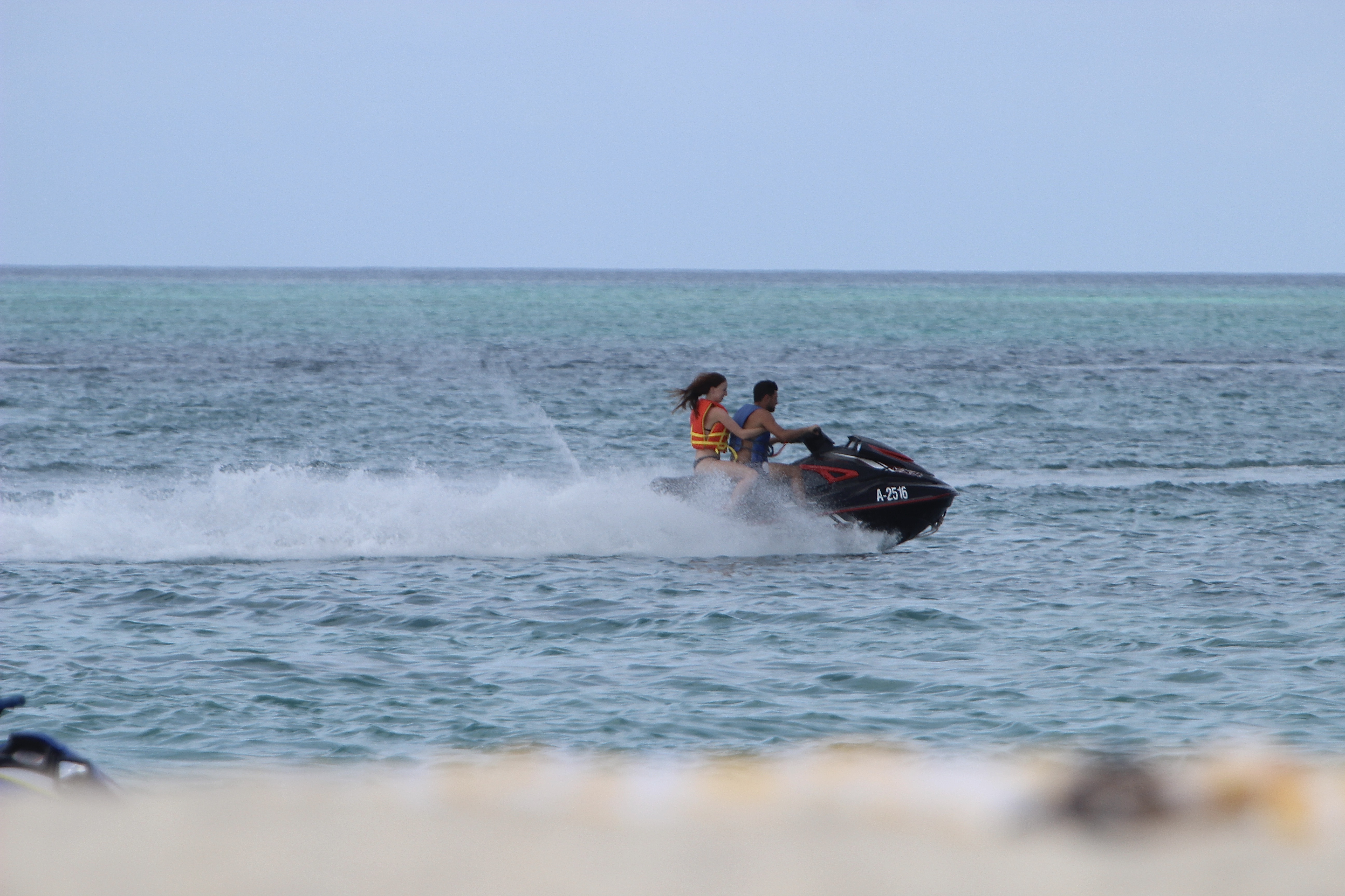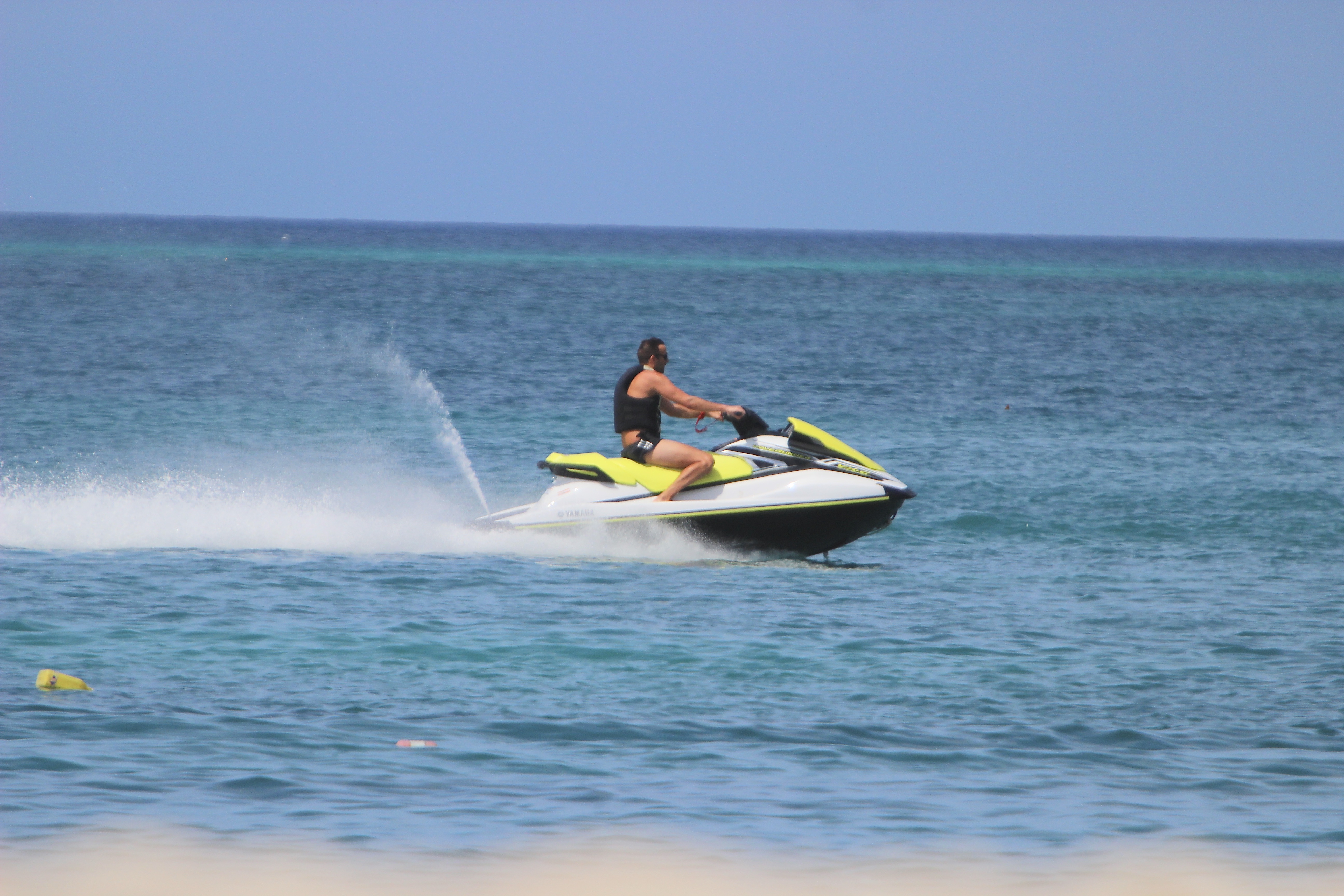 From the beach people rent jet skis or embark on boat rides. There is also a cordoned off area for swimmers.