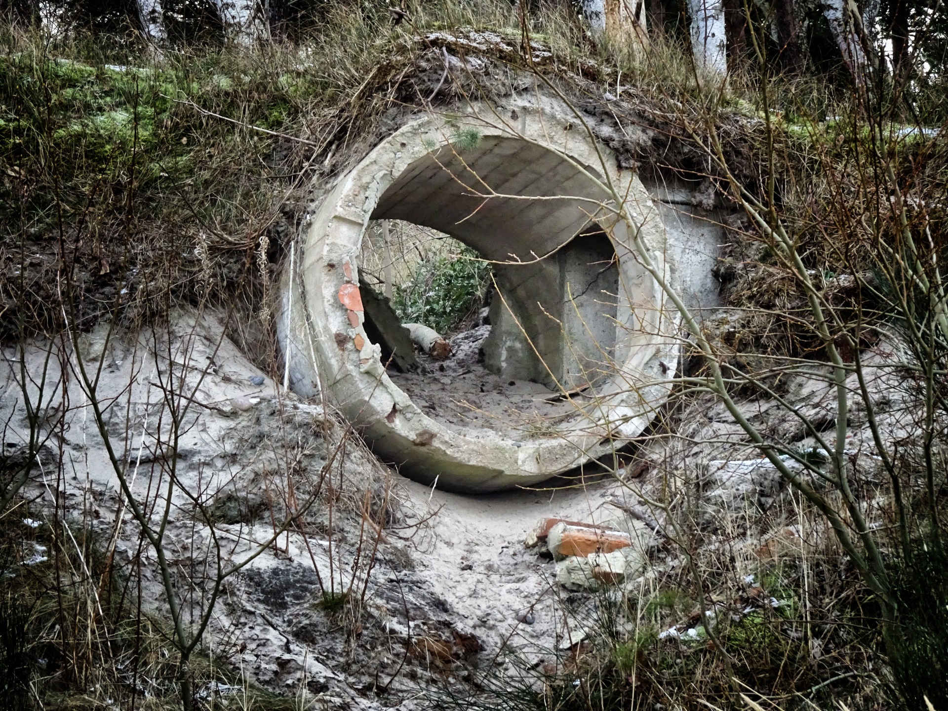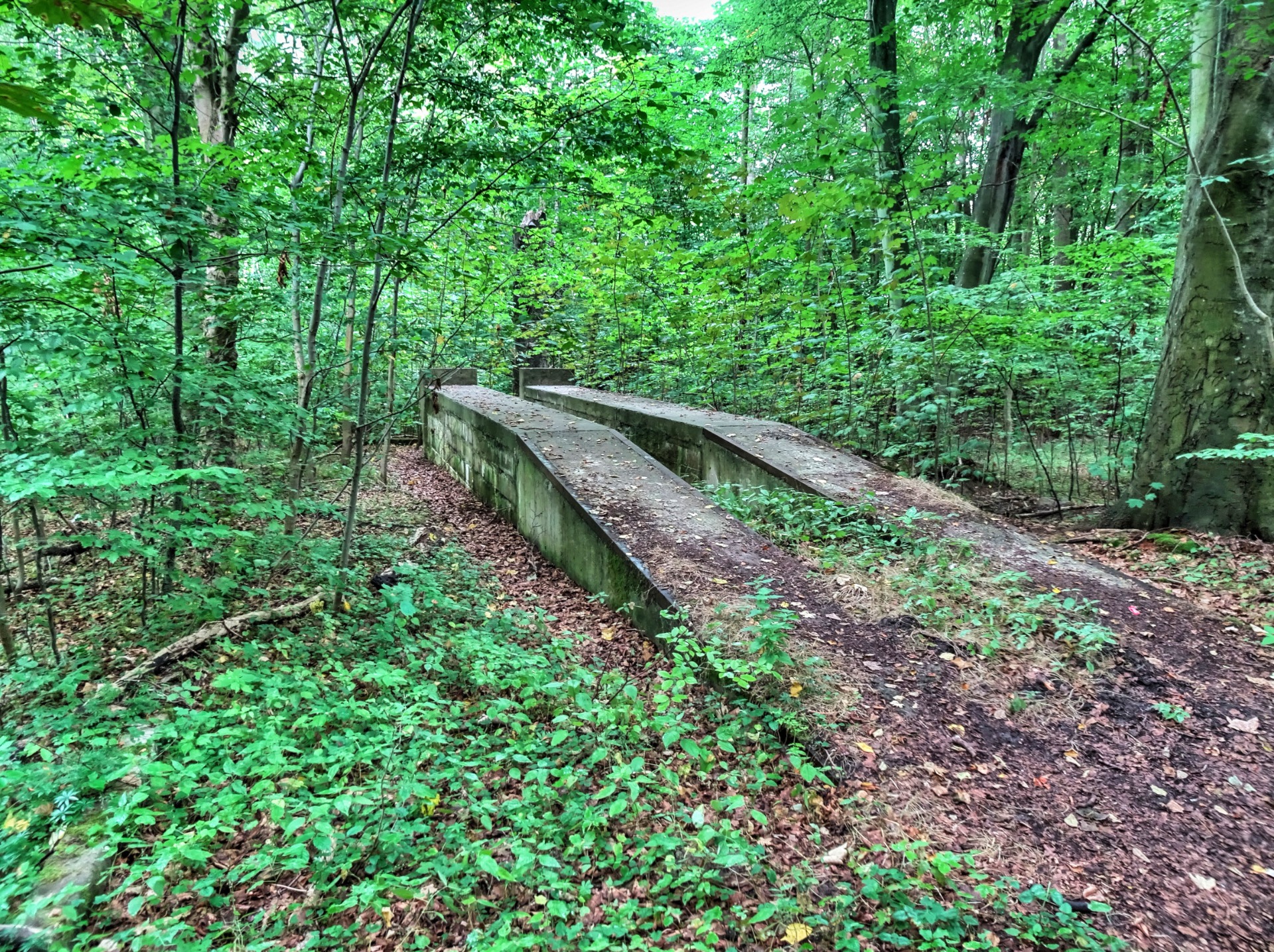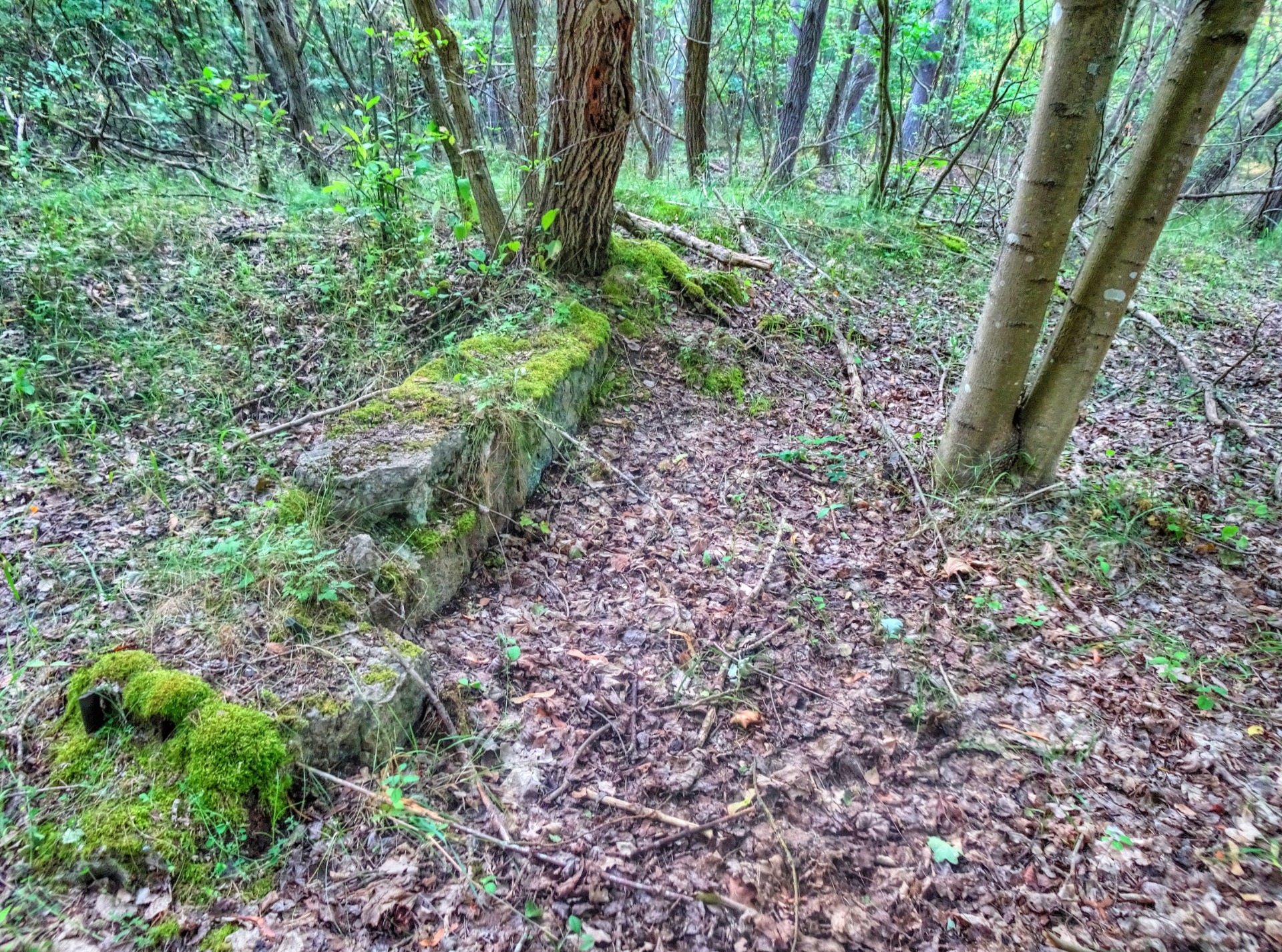Hidden beneath the roots are the remains of so-called one-man bunkers, where soldiers had to spend long, lonely shifts staring at the horizon. In other places, only connecting passageways remain between positions that have long since disappeared.