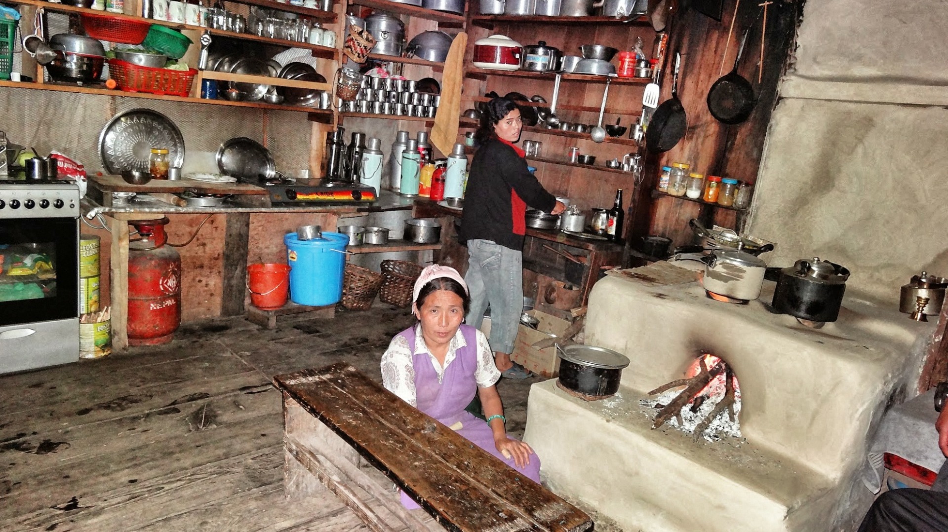 Our guide, Udaya Sharma, tells us about the dangers this entails. In almost all rural households in Nepal today, cooking is still done with open fire directly in the living room - living room means the one and only room they have. The room fills up with the acrid smoke of the fire and especially the women who sit in front of the stove all day long suffer from constant irritation of the eyes and have to struggle with long-term lung damages like asthma and lung cancer.