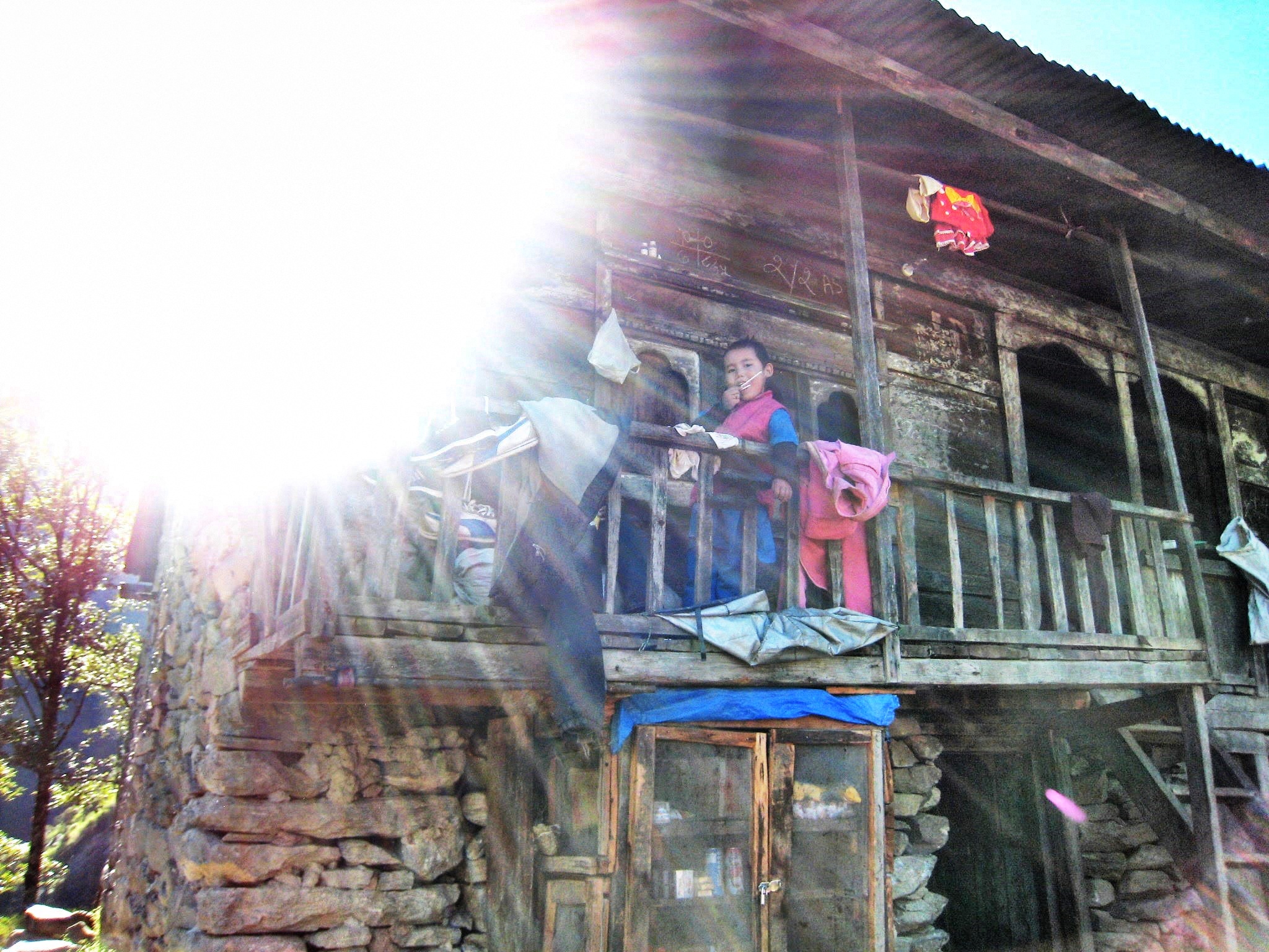 To the village of Thula Syabru at 2,200 m it is only a short walk now. Here the locals have resolved enough room for terrace fields and a place that nearly looks like a city midst the actually hostile environment. The oldest ones of the houses, mostly built of wood and stone, have lovingly carved balconies, worn down by centuries of harsh weather, but can still be seen in all their former beauty.