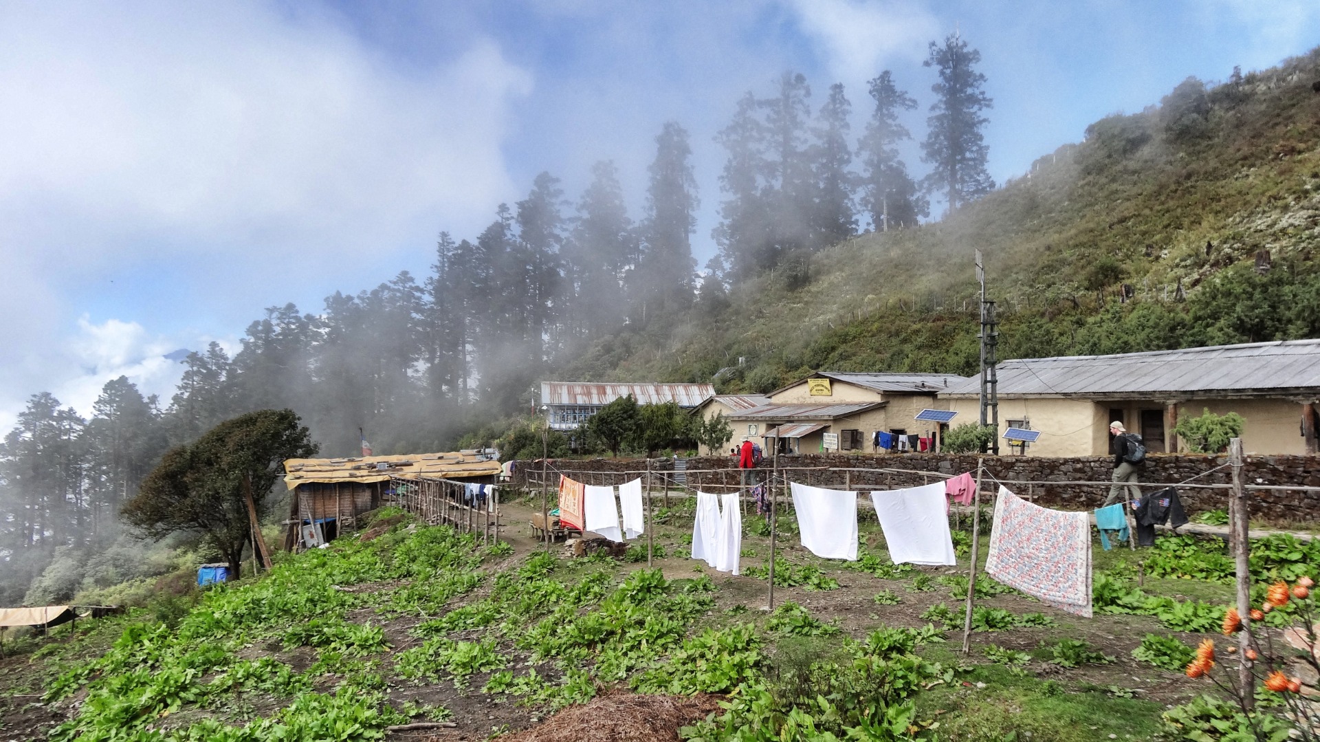 The path from Chanlang Pati to Thula Syabru now is like a walk in the park now. It no longer rains, instead the sun shines. And it goes downhill almost the whole day. In Chalang Pati at 3,580 meters, we can get cheese from it's state cheese factory, who are tasting great. At least for those who didn't look into the production rooms before the first bite. The manufacturing hall looks like a dark cave who hasn't see a broom or rag since ages.