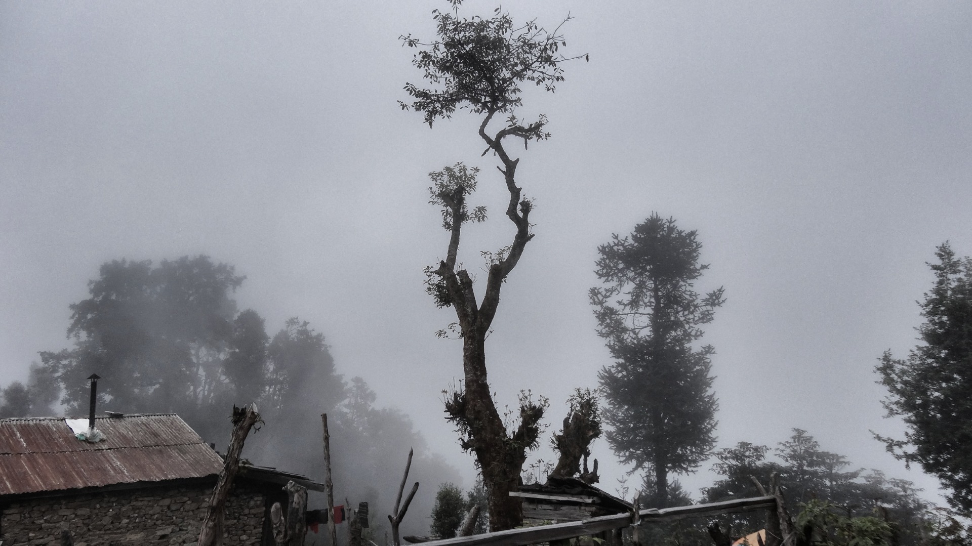Trees in the fog.