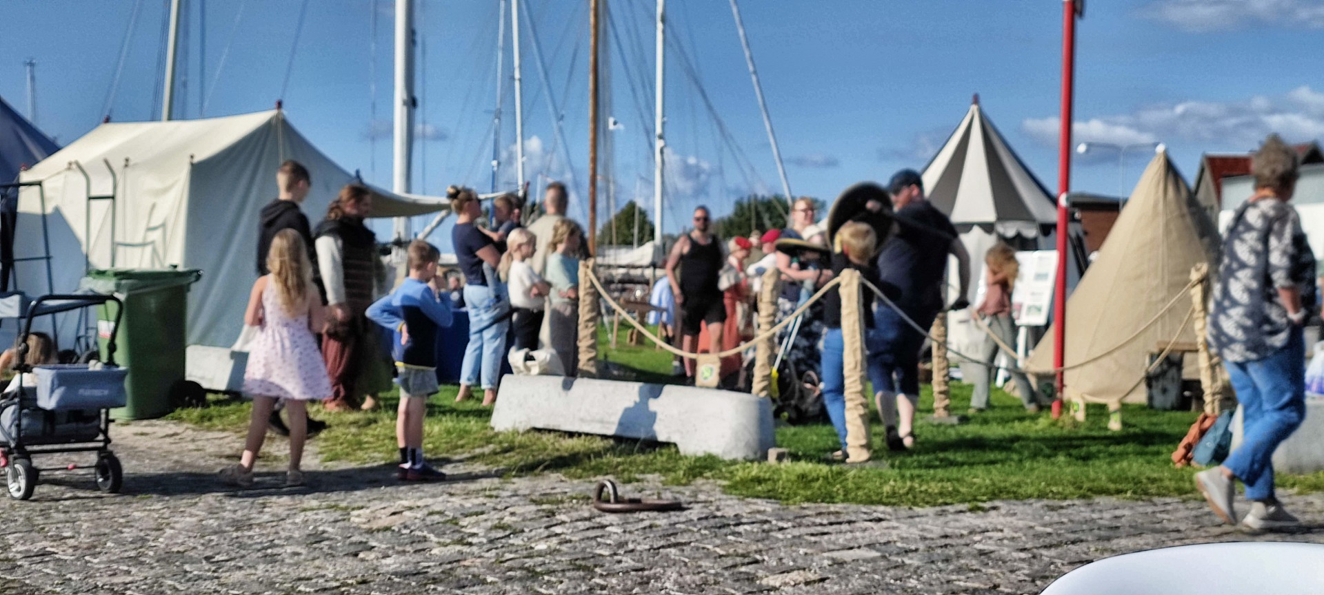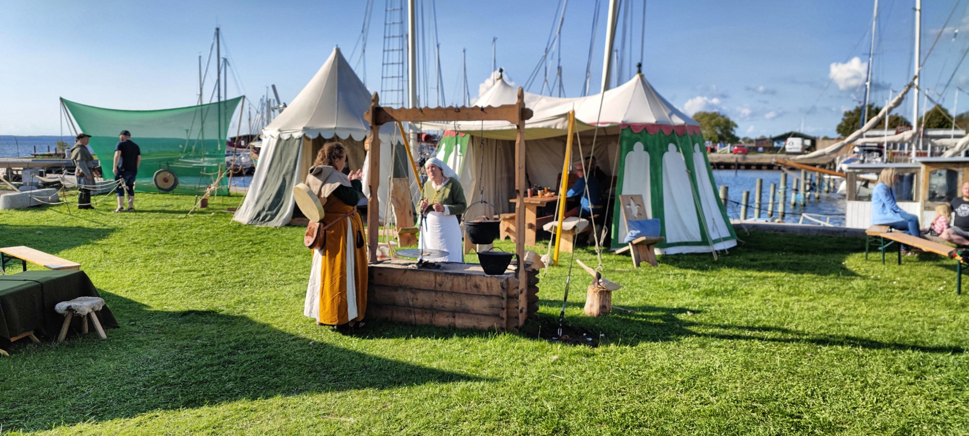 The most beautiful place here is the harbor, where people are singing and dancing too. Right next to the Møns Museum with the Empiregaarden and the Thorsvang Collector's Museum there is a medieval Viking village, another band plays and ships sail through the yeast basin.