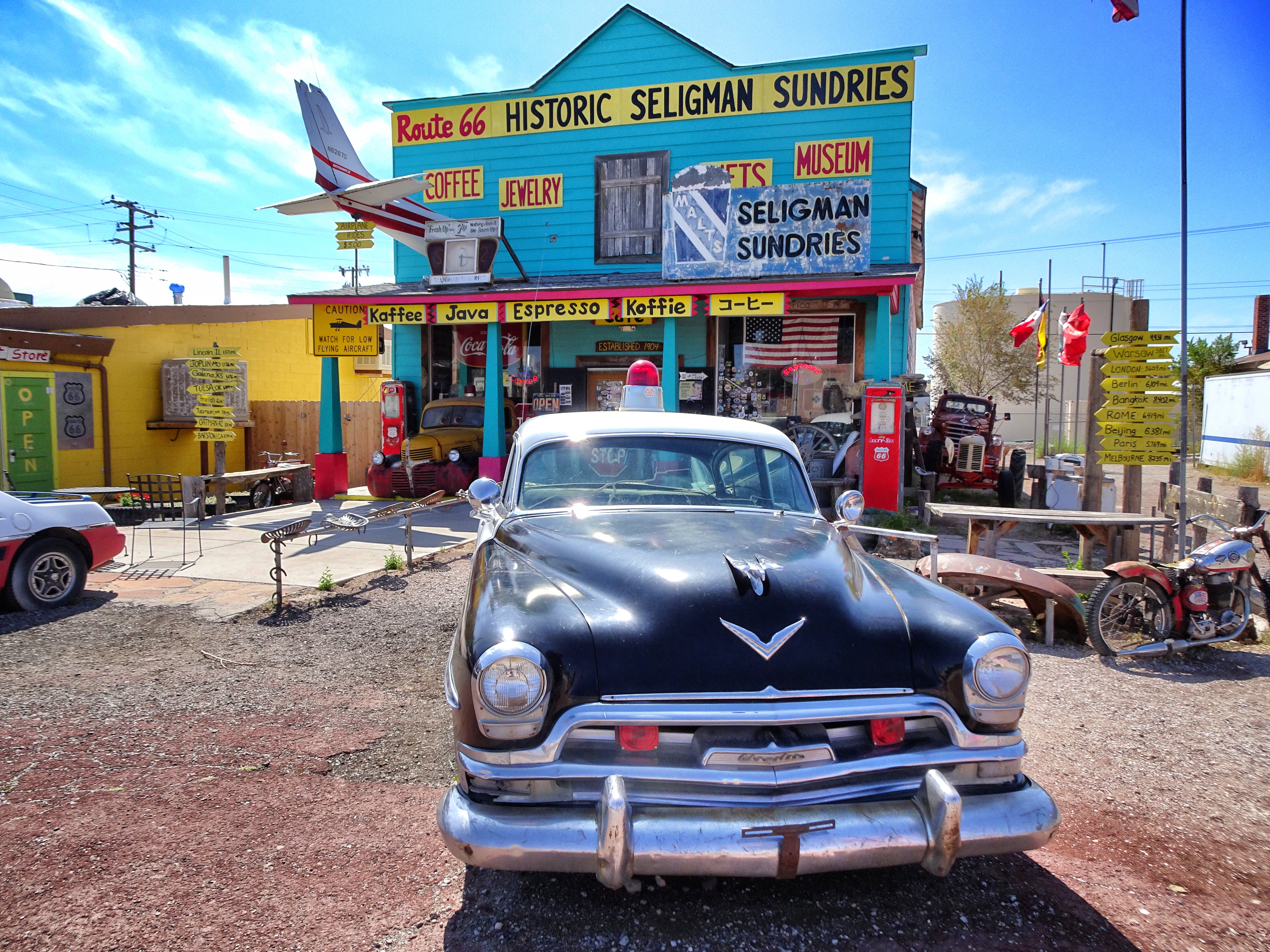 get your kicks on Route sixty-six”. Behind Flagstaff the adventure begins, behind Seligman you are in the middle of nowhere and in the middle of your ride. Take a look into nothing on the left and after that a look into nothing on the right. Miles and miles and miles to go and no one with you. All the others stuck in Seligman, the self named “Place of birth of the historic Route 66”. The most of the fun is done when you`re reaching und Kingman, the self-named „Capital of Route 66“.