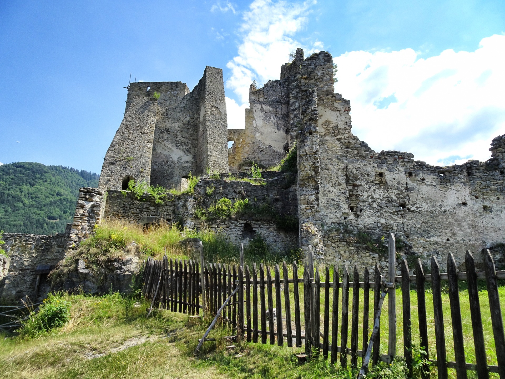 It's architecture is considered a valuable example of the late Gothic and Renaissance periods. But if you hike up, under a huge motorway bridge that is under construction and then up a steep slope that leads through dense forest, always along a small stream, you will discover the remnants of great history at the top, diminished by the passage of time.