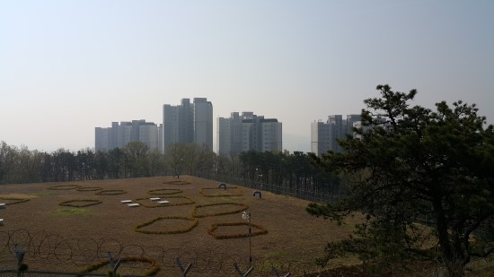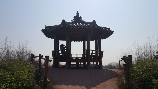There is a milestone in the trail entrance. There are facilities and spaces to exercise in the middle. Hee Sung apartment is located next to the world apartment. I can see Ilsan Bridge far away from Palgakjeong Pavilion. It is an octagonal ridge located on the top.