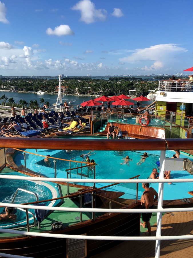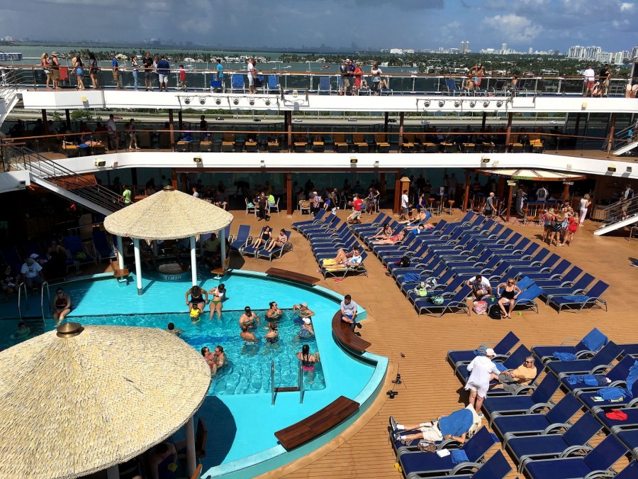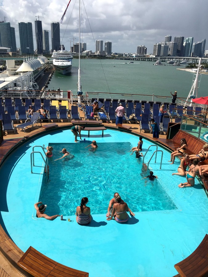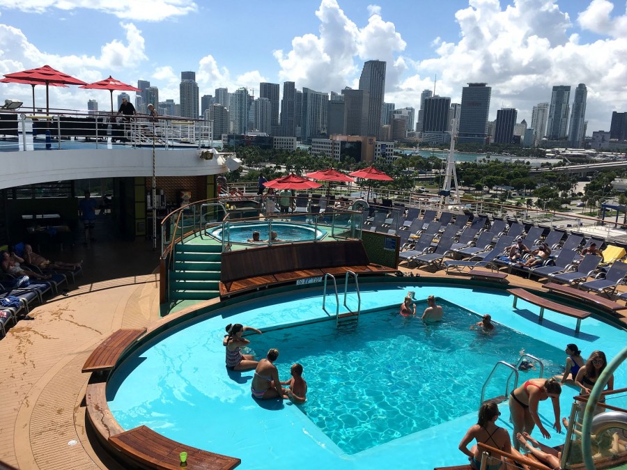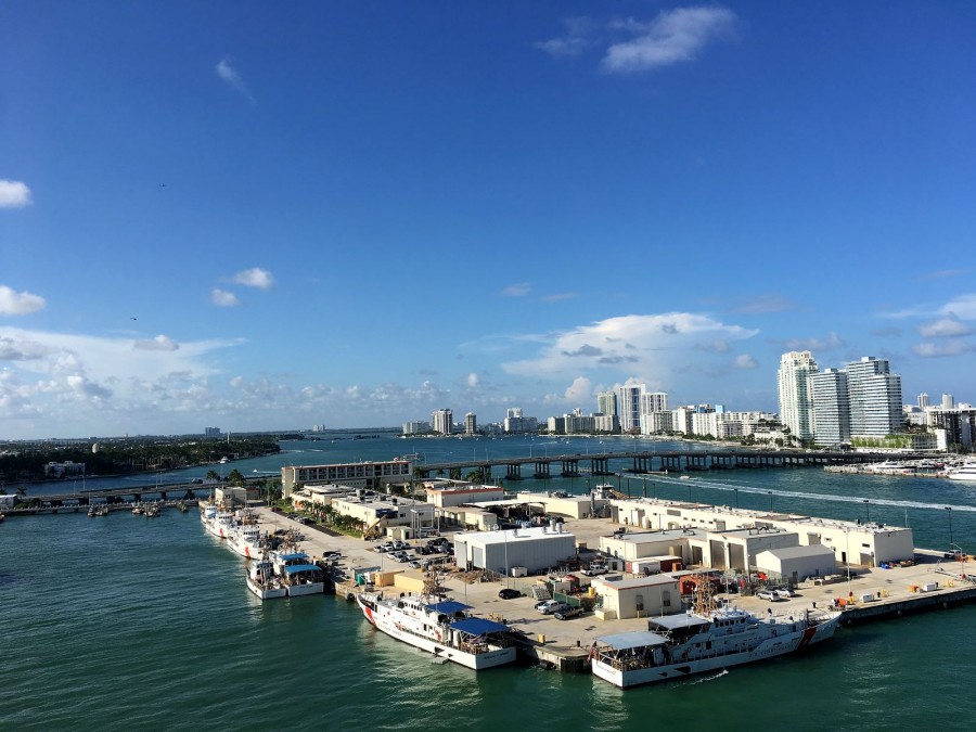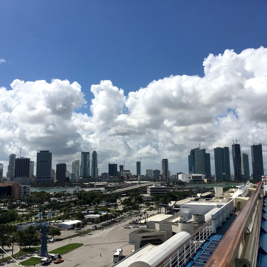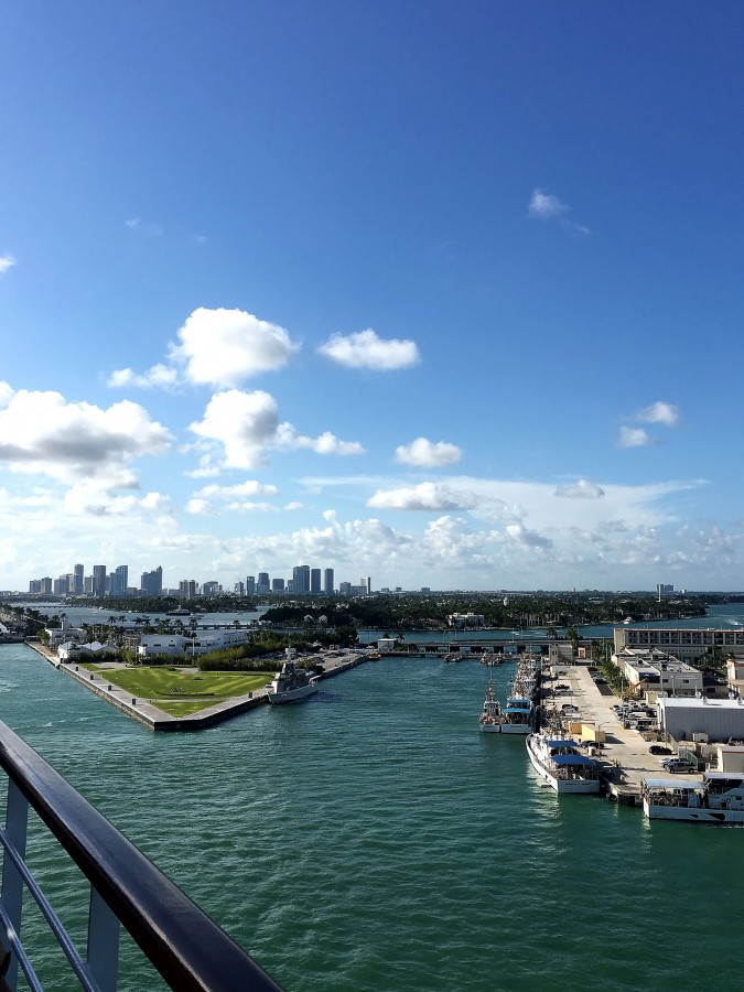 So, under the dances, imperceptibly and sailed away. Moreover, we even discovered that we were already sailing, not immediately. And immediately began to photograph the receding port of Miami.