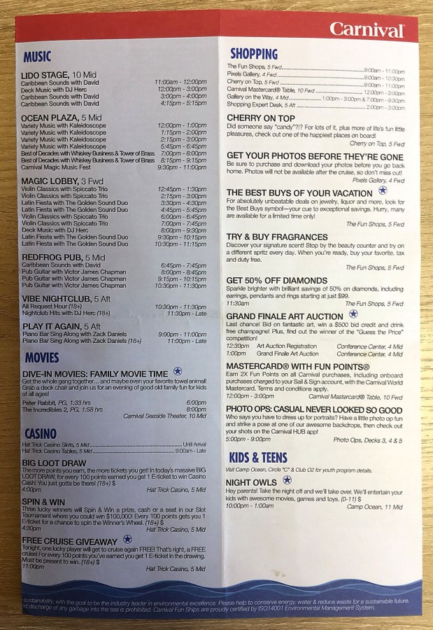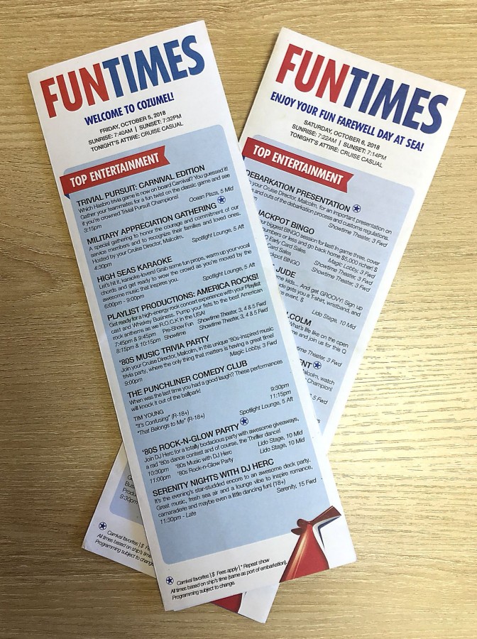 So I want to lay out the schedule of the day at sea for the most curious.
