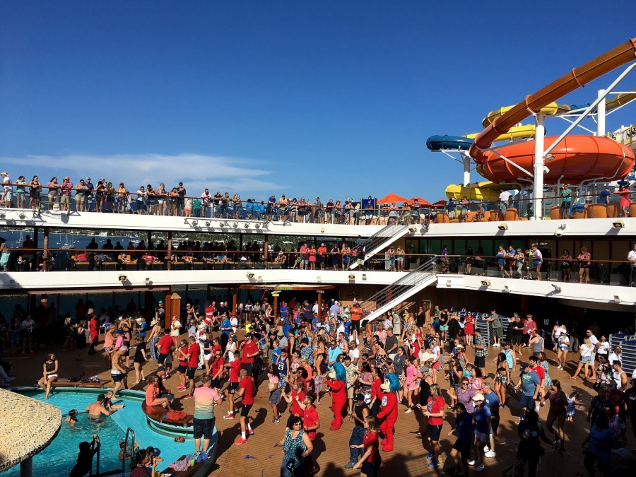 And some have already organized dances and actively involve everyone who is already resting on the upper deck, and people are actively joining.