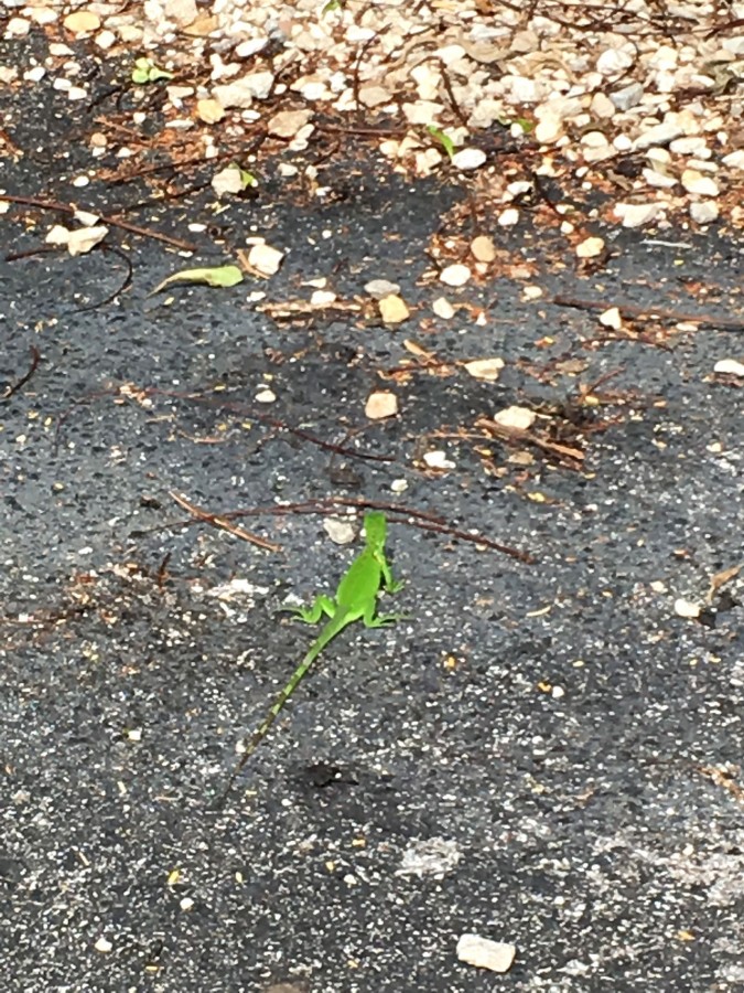 And on the road you don’t need to look for this little jaguana, too bright green on gray asphalt.