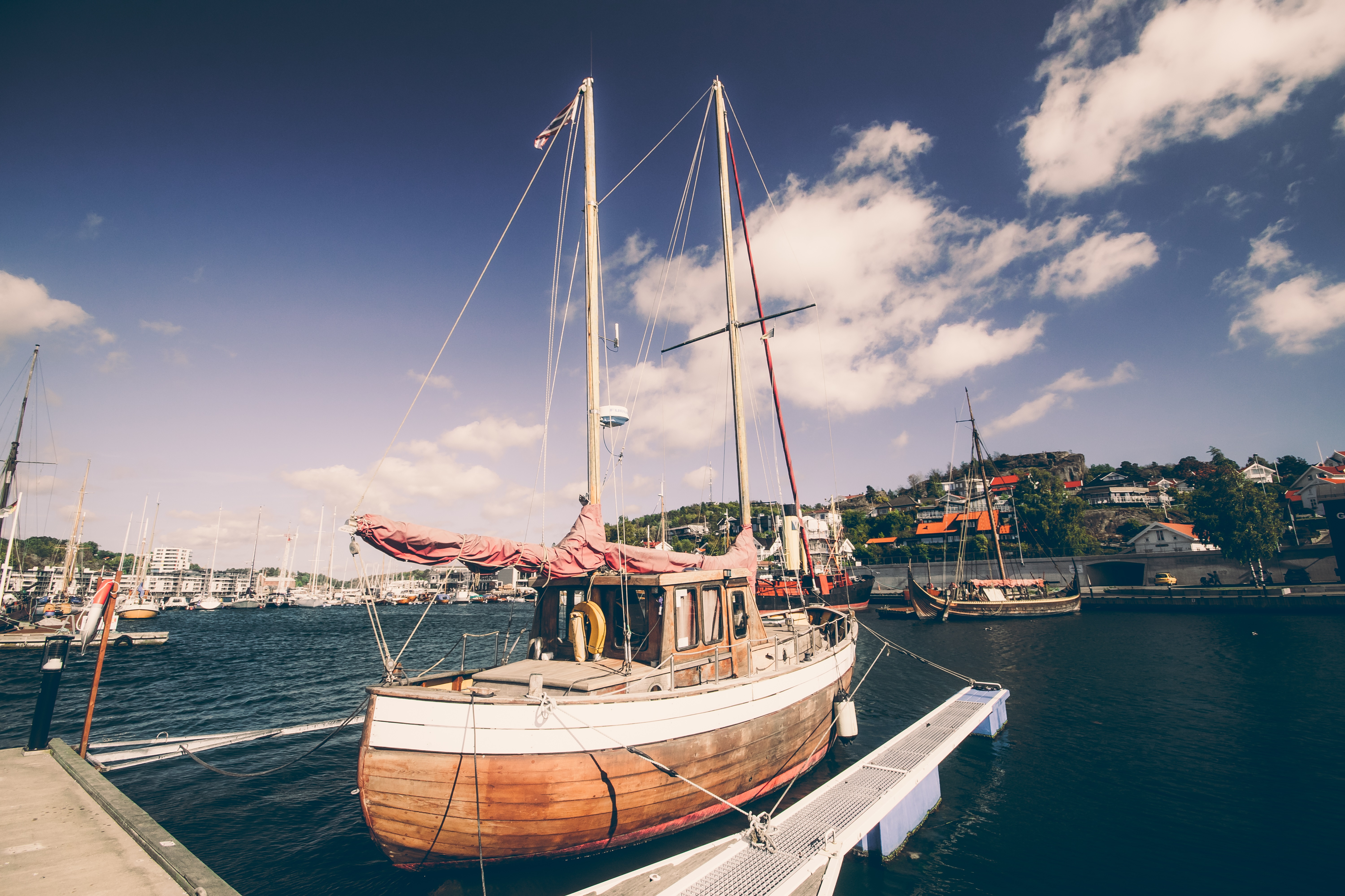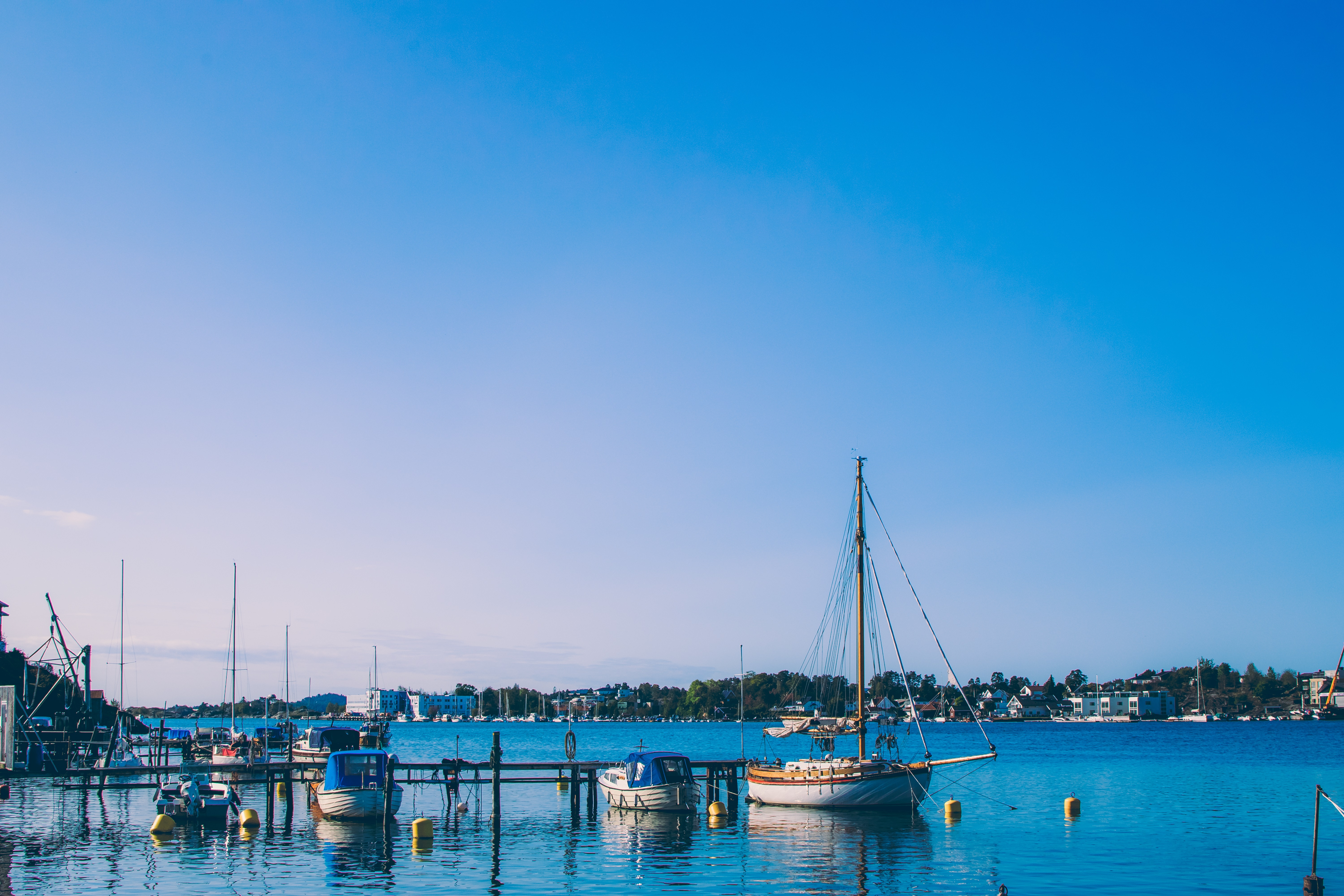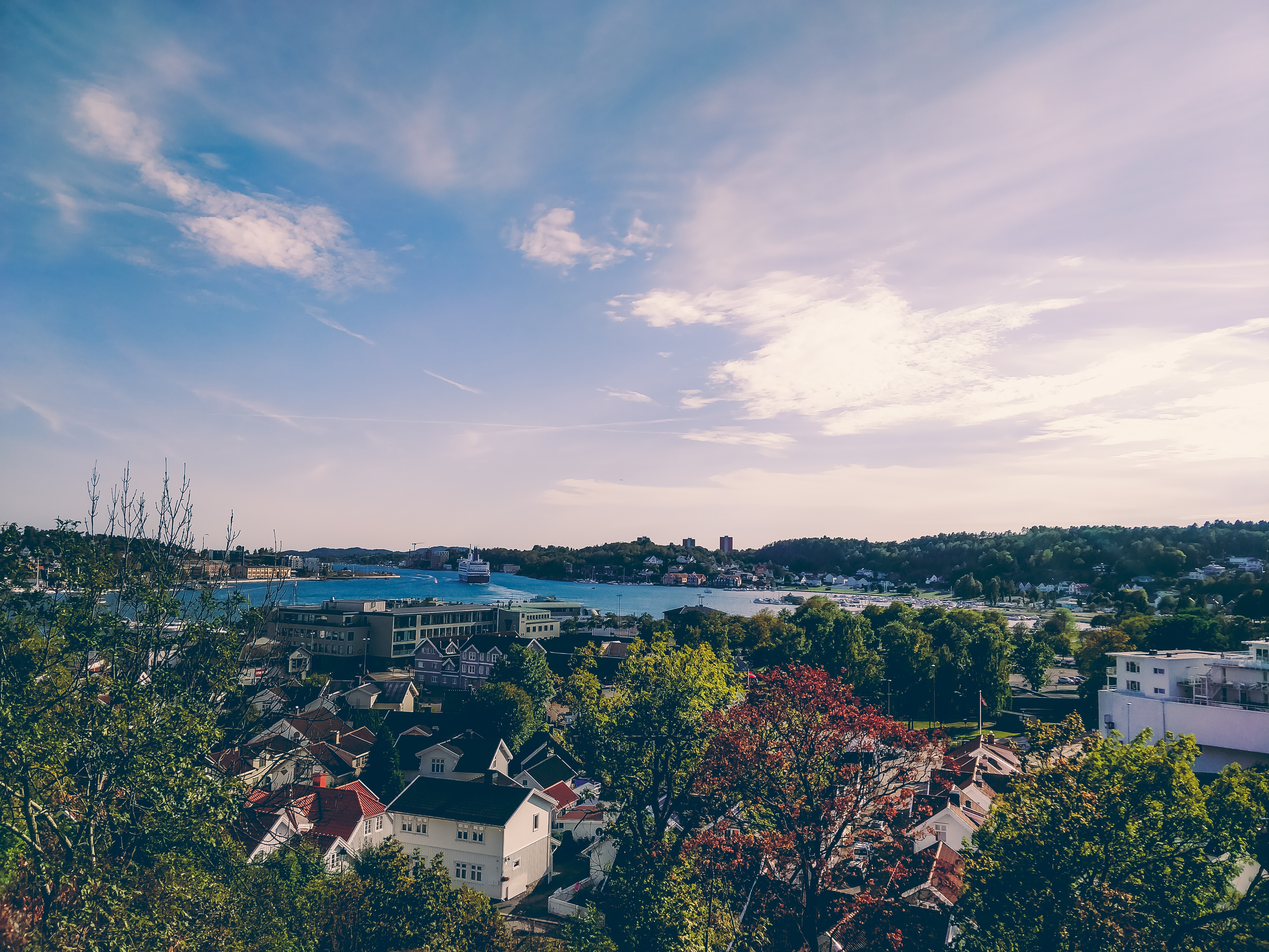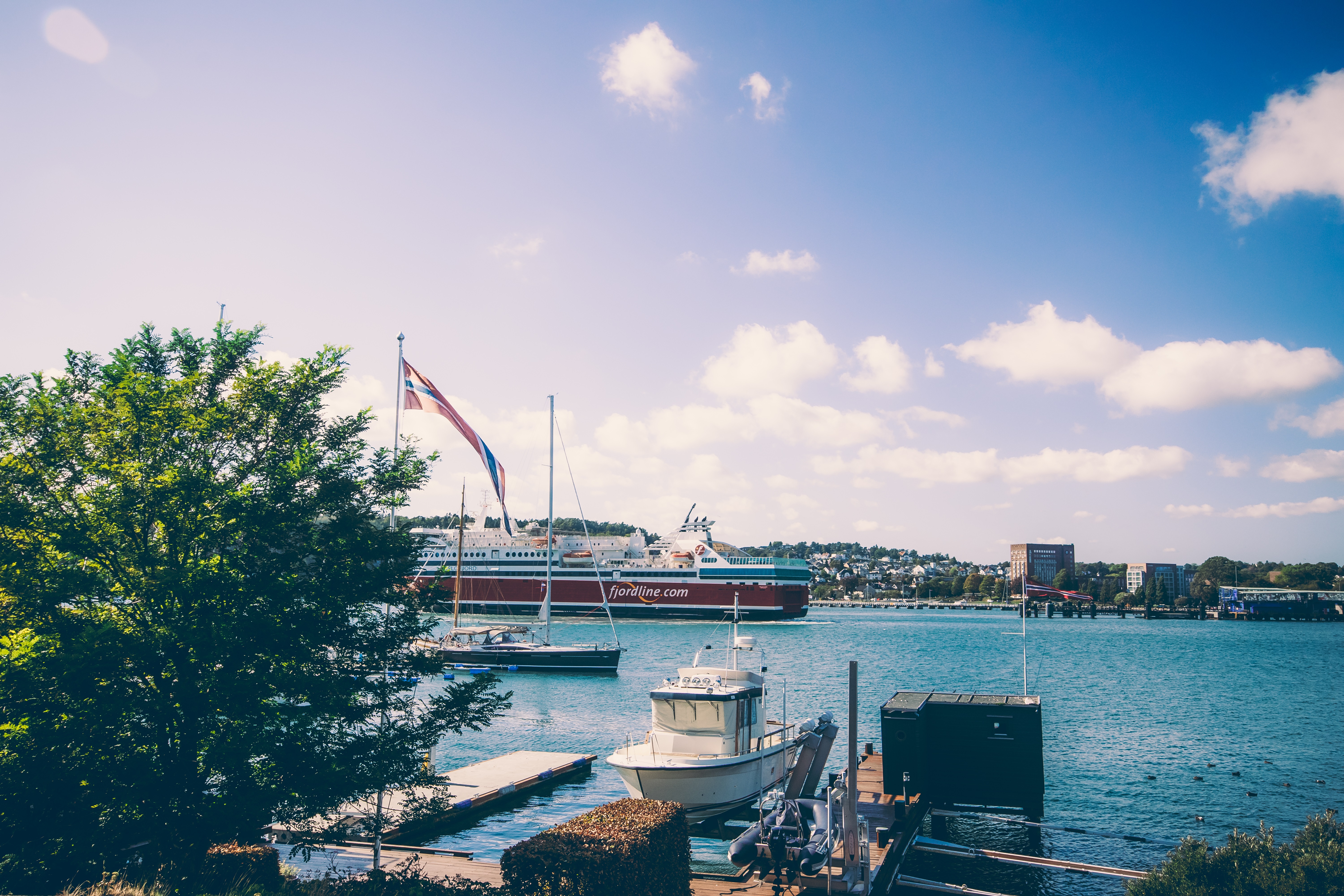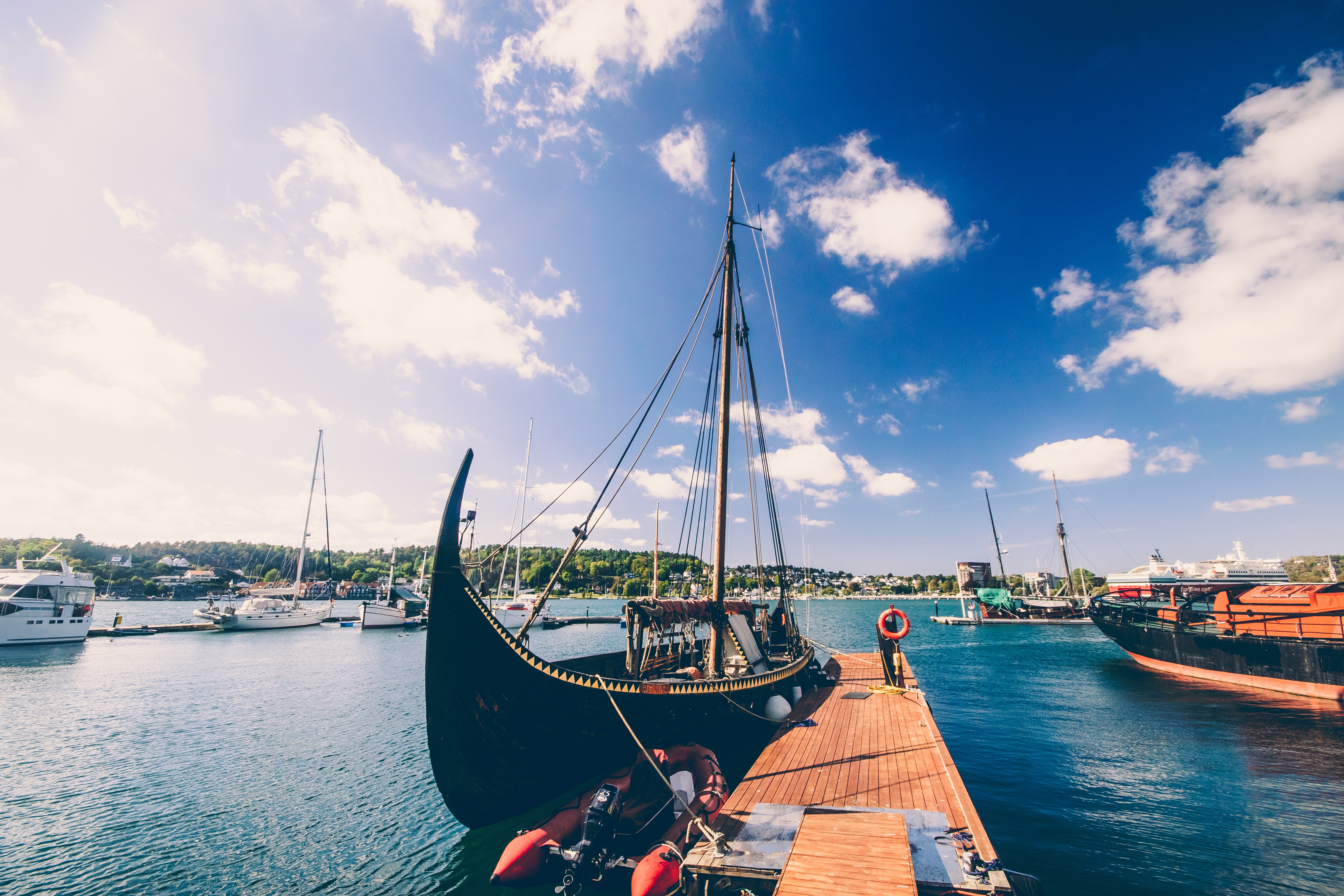 The city itself is quite strict. A typical Scandinavian atmosphere. It's getting more interesting over the water. Picturesque fjord, marina and port, where huge ferries are coming every now and then.
