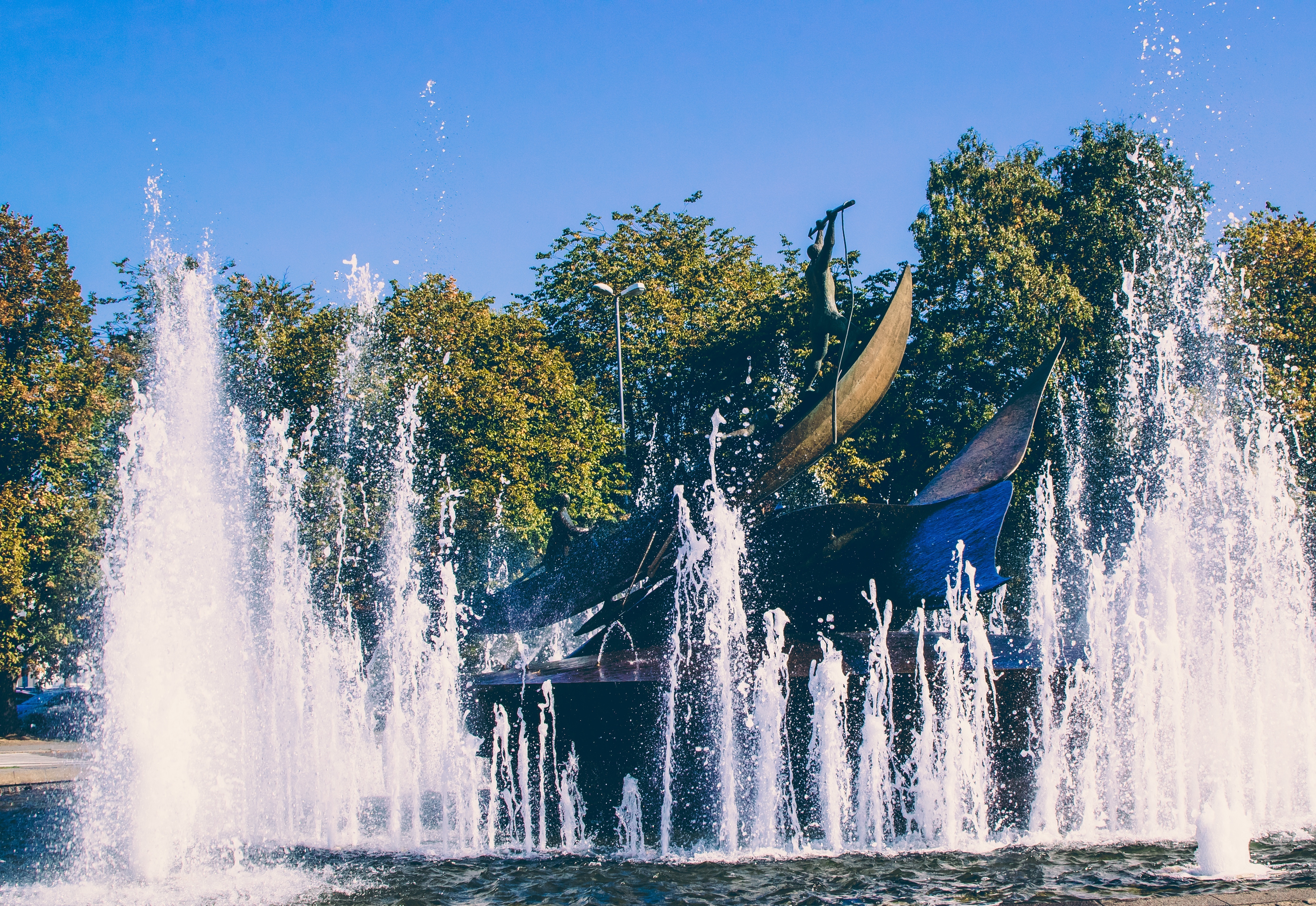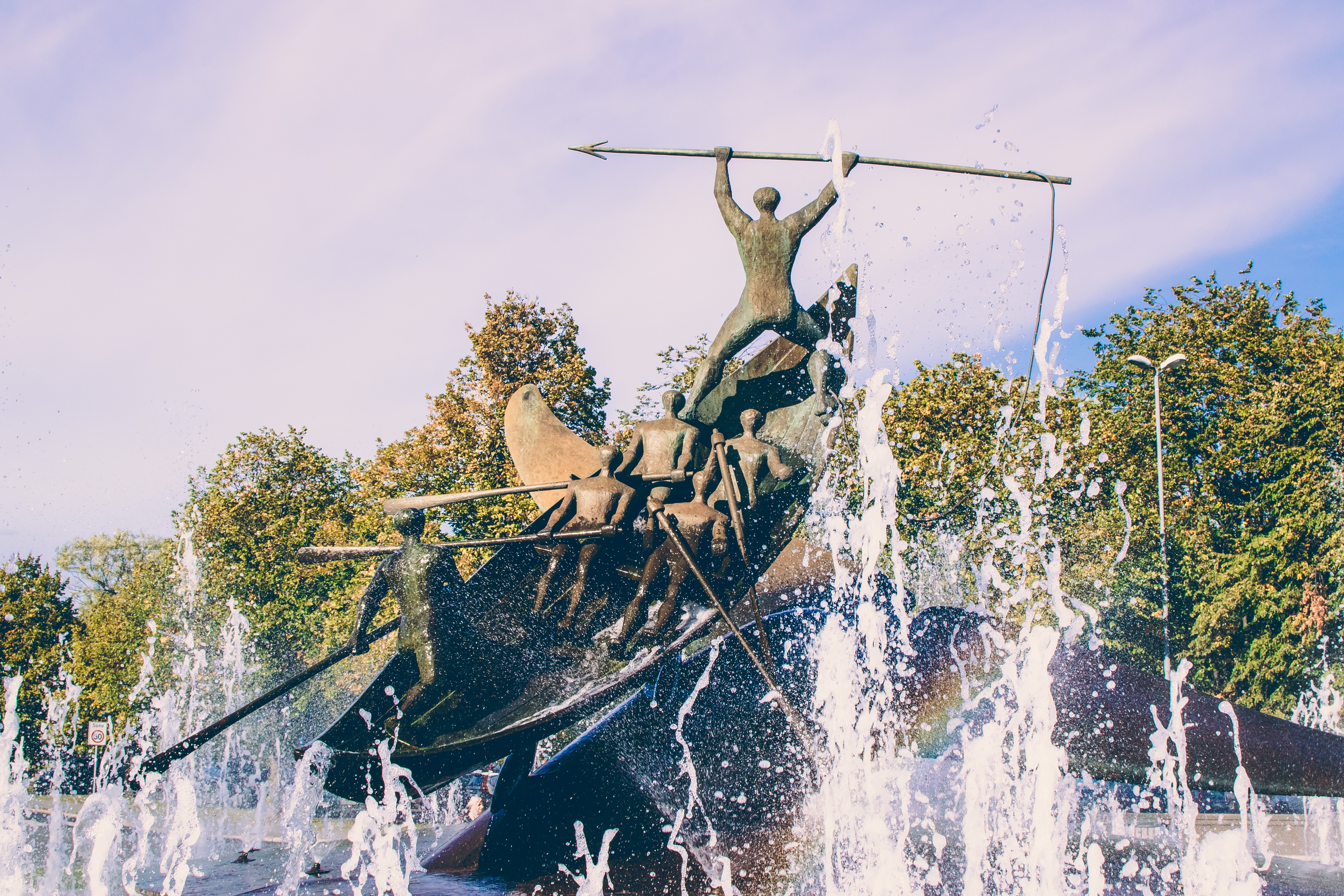 The fact that Sandefjord was a city of whalers resembles the Hvalfangstmonumentet monument. A boat on a rough sea during the hunt.