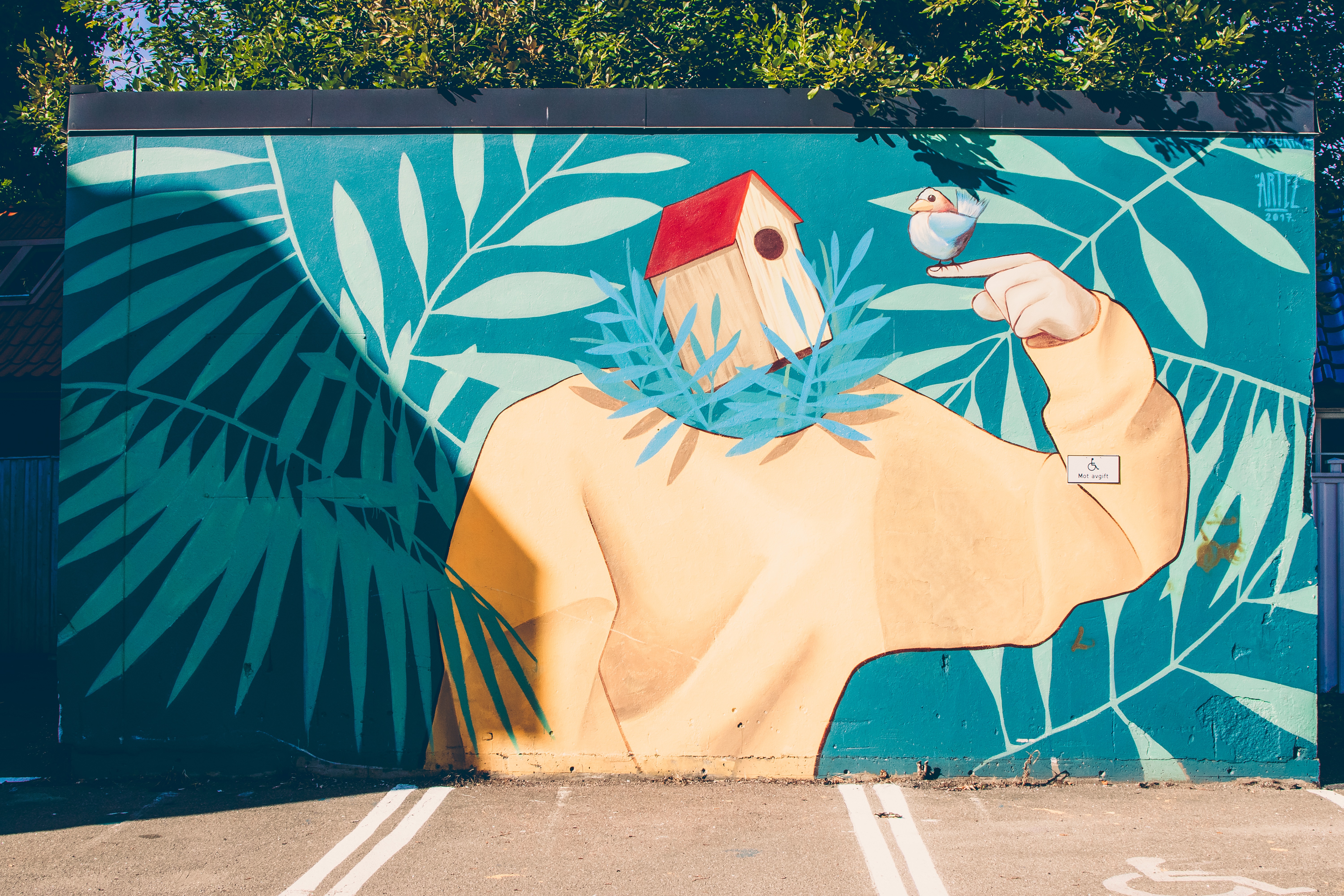 On the buildings you will find beautiful murals!