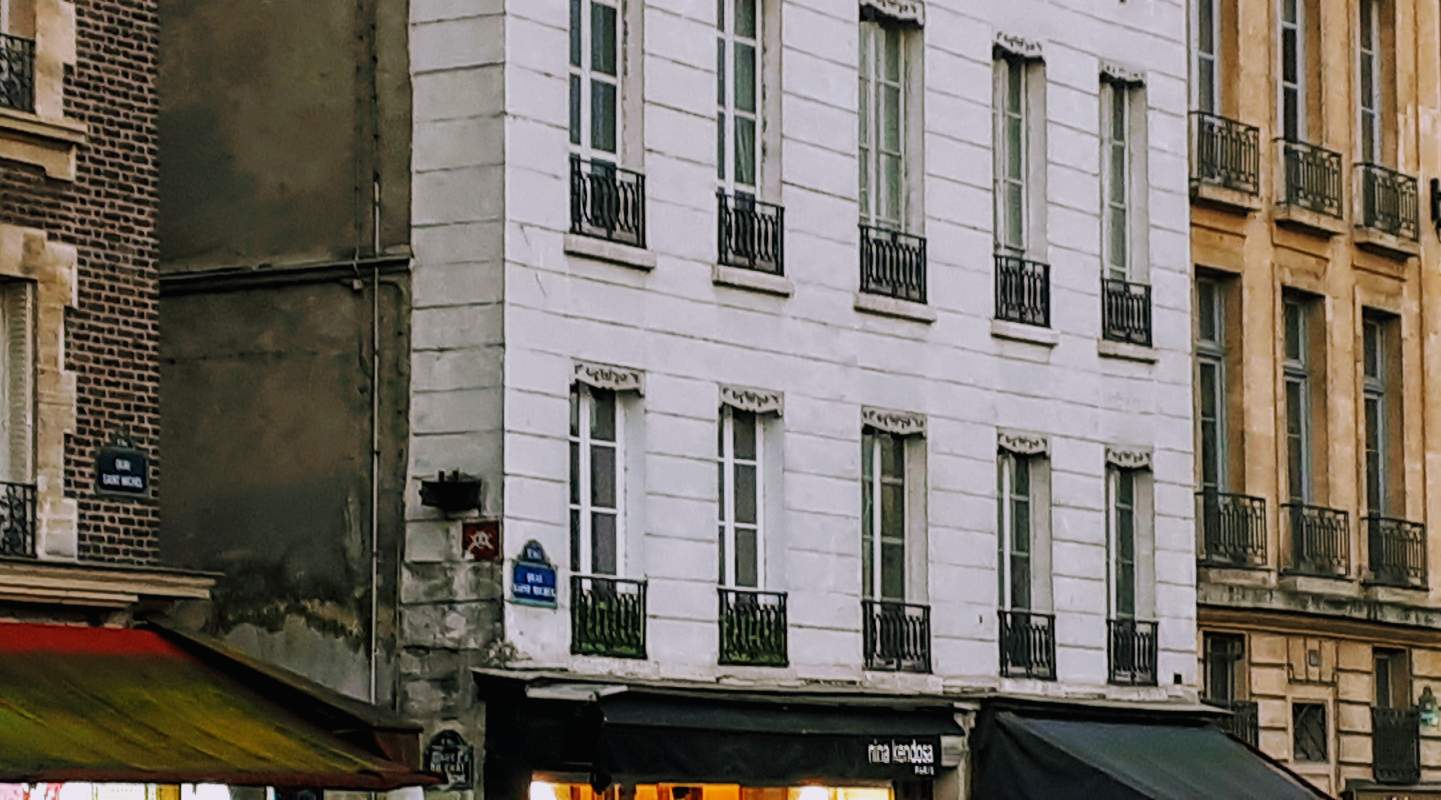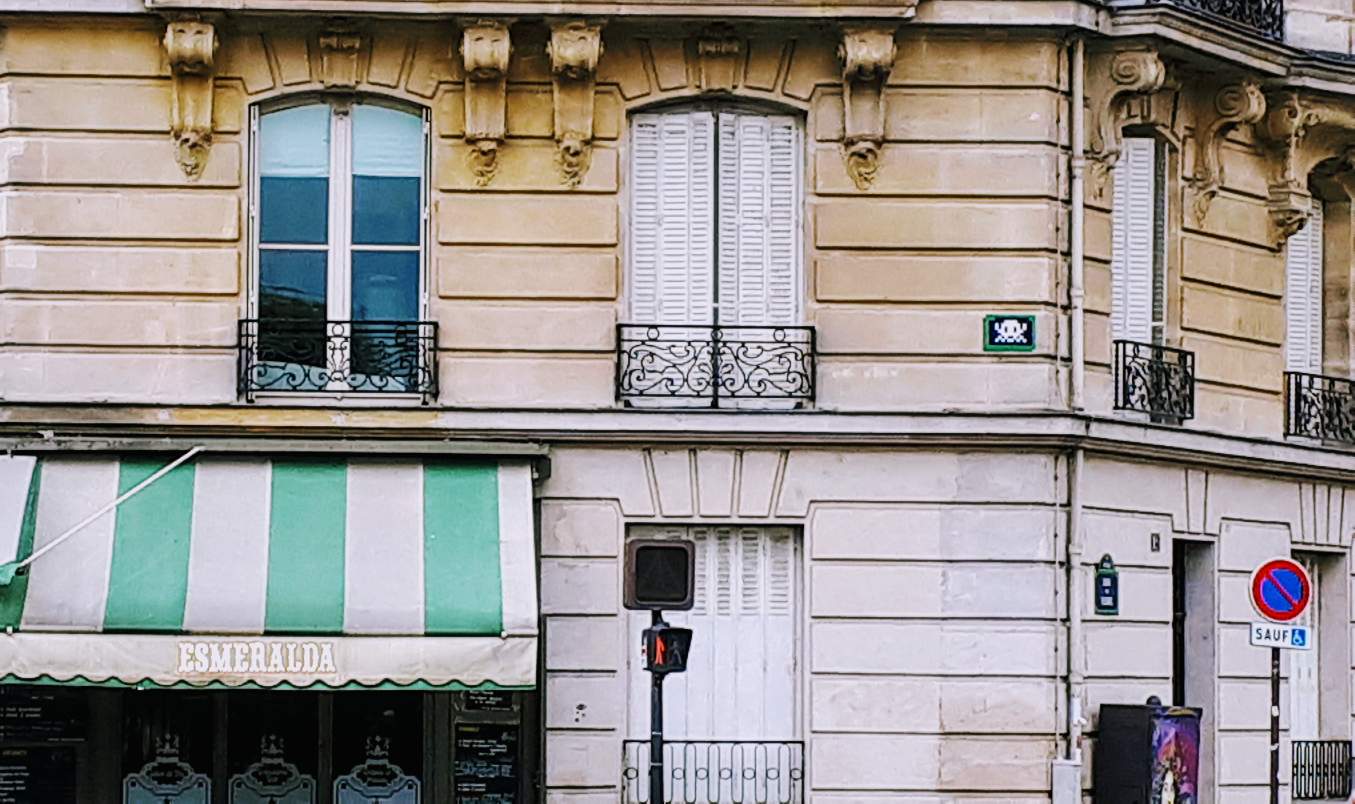 I was able to zoom in a little on this one. As you can see the white space invader is sitting against a blue background and green border. It is meant to mimic a Parisian street sign. This particular alien is trying to camouflage itself into its surroundings. Smart little creature.