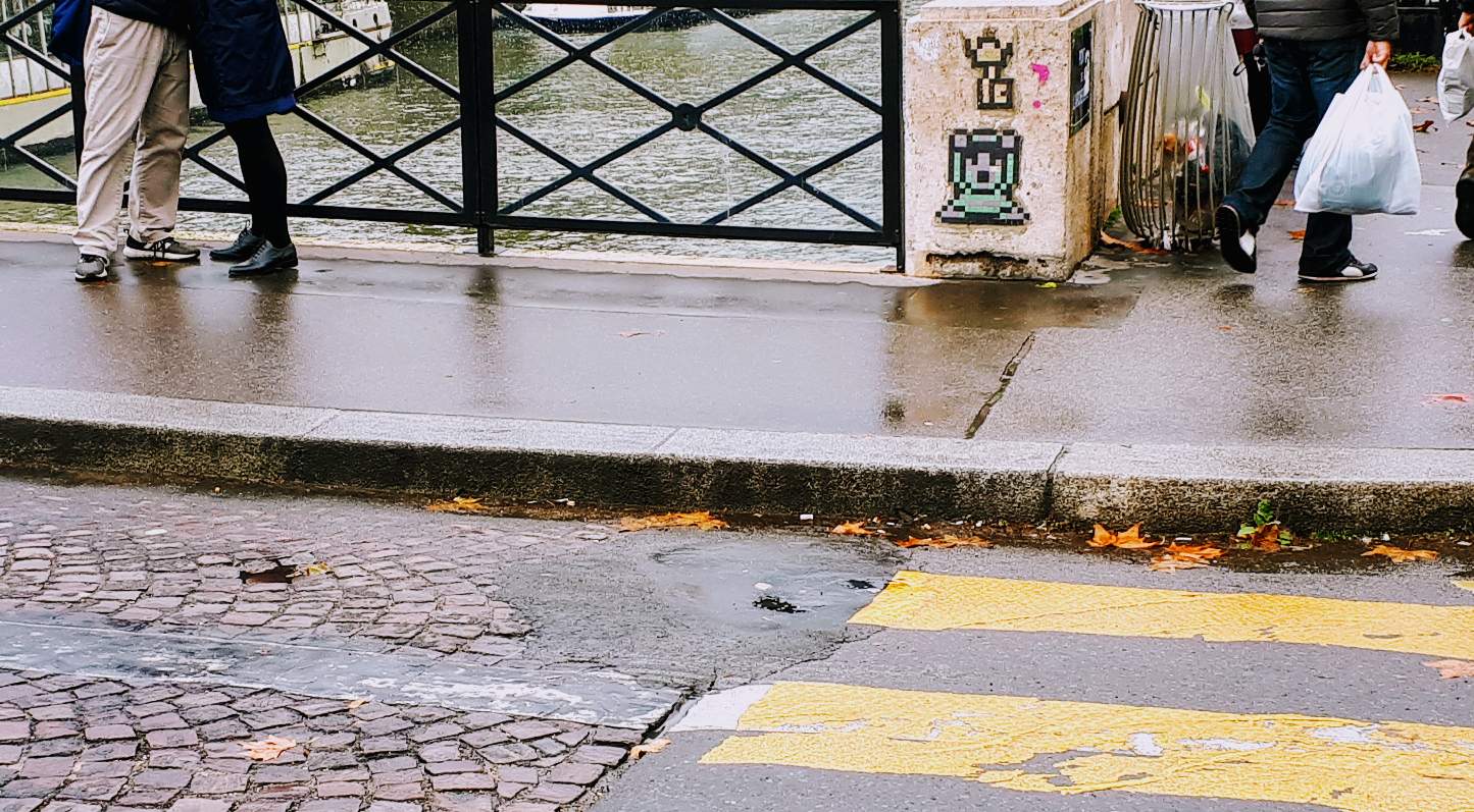 The next piece was located on the end of a bridge that crosses the Siene river. This classic video game reference, which I believe is Zelda finding a key, looks quite old to me.