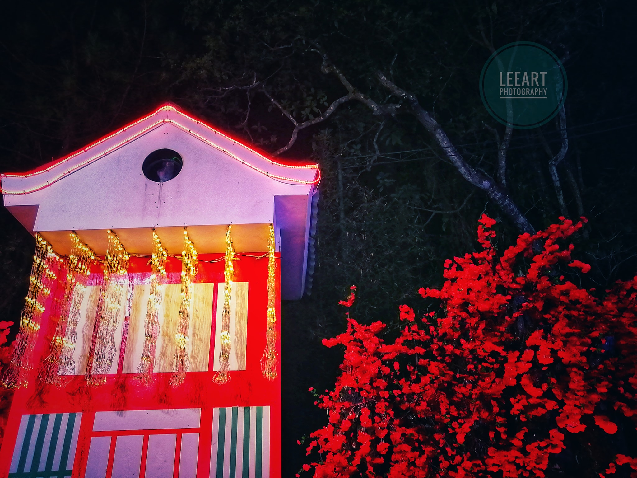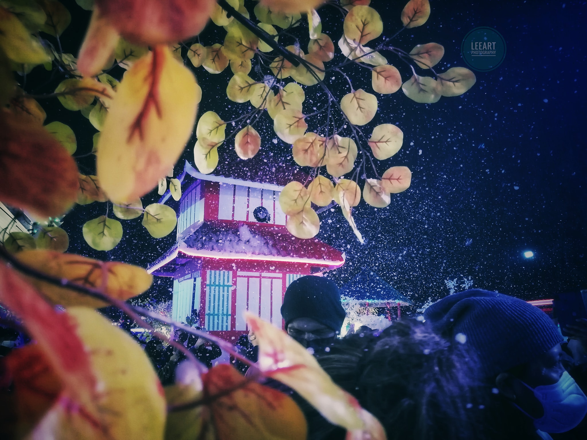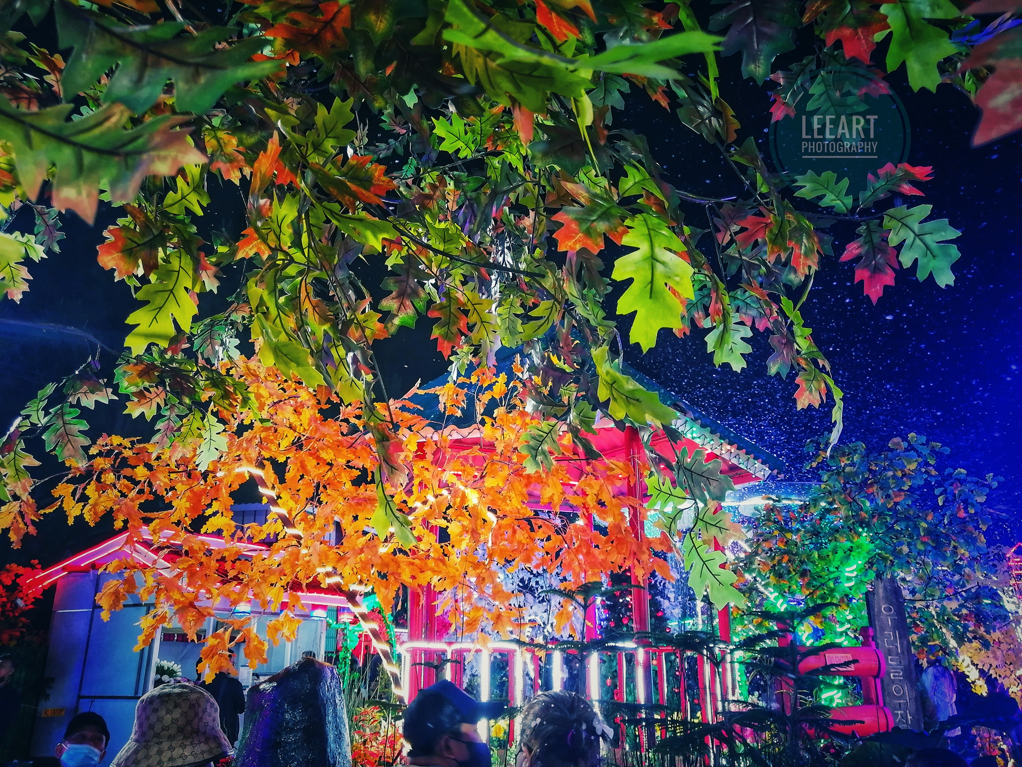 The theme of the village is Korean, Japanese and Chinese but mostly Japanese. Different colored trees are scattered around along with flowers, lanterns and other structures. All these were artificial I believe. However, they worked together to make the place look someplace else.