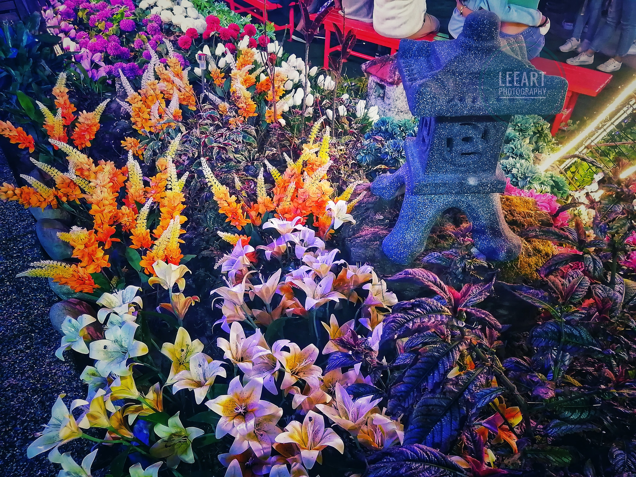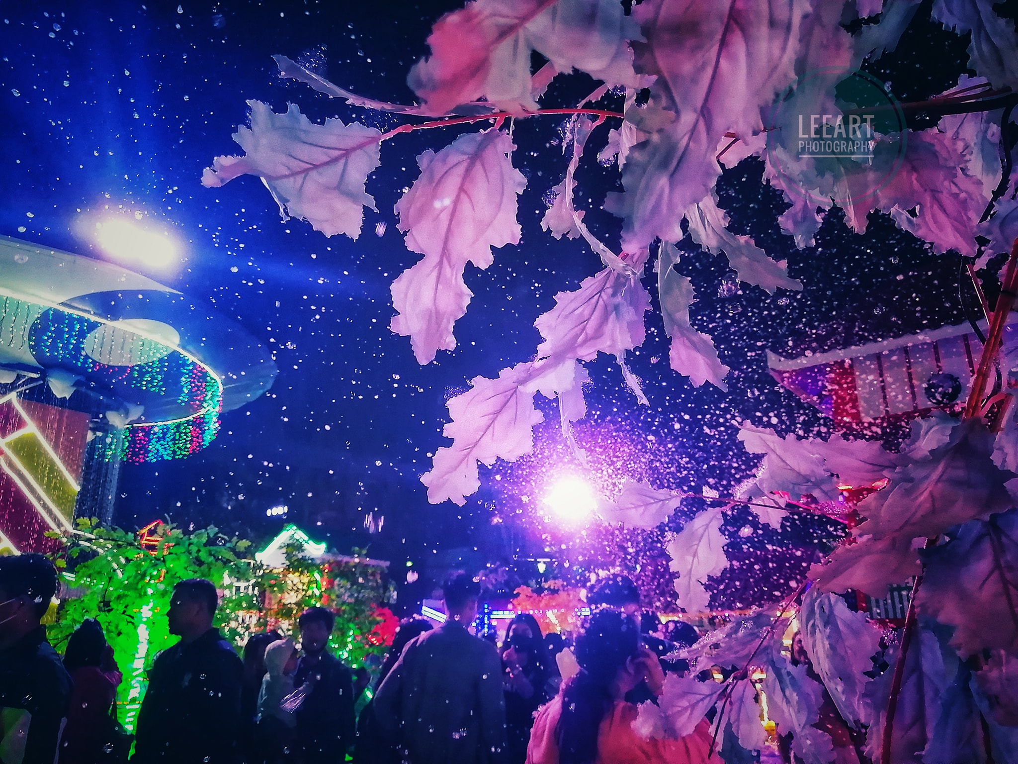 There were four pagodas set up which were the sources of these bubbles sprayed every 20 minutes or so interval. That's why at the gate they continually remind everyone not to wear slippers to avoid getting wet from the bubbles.