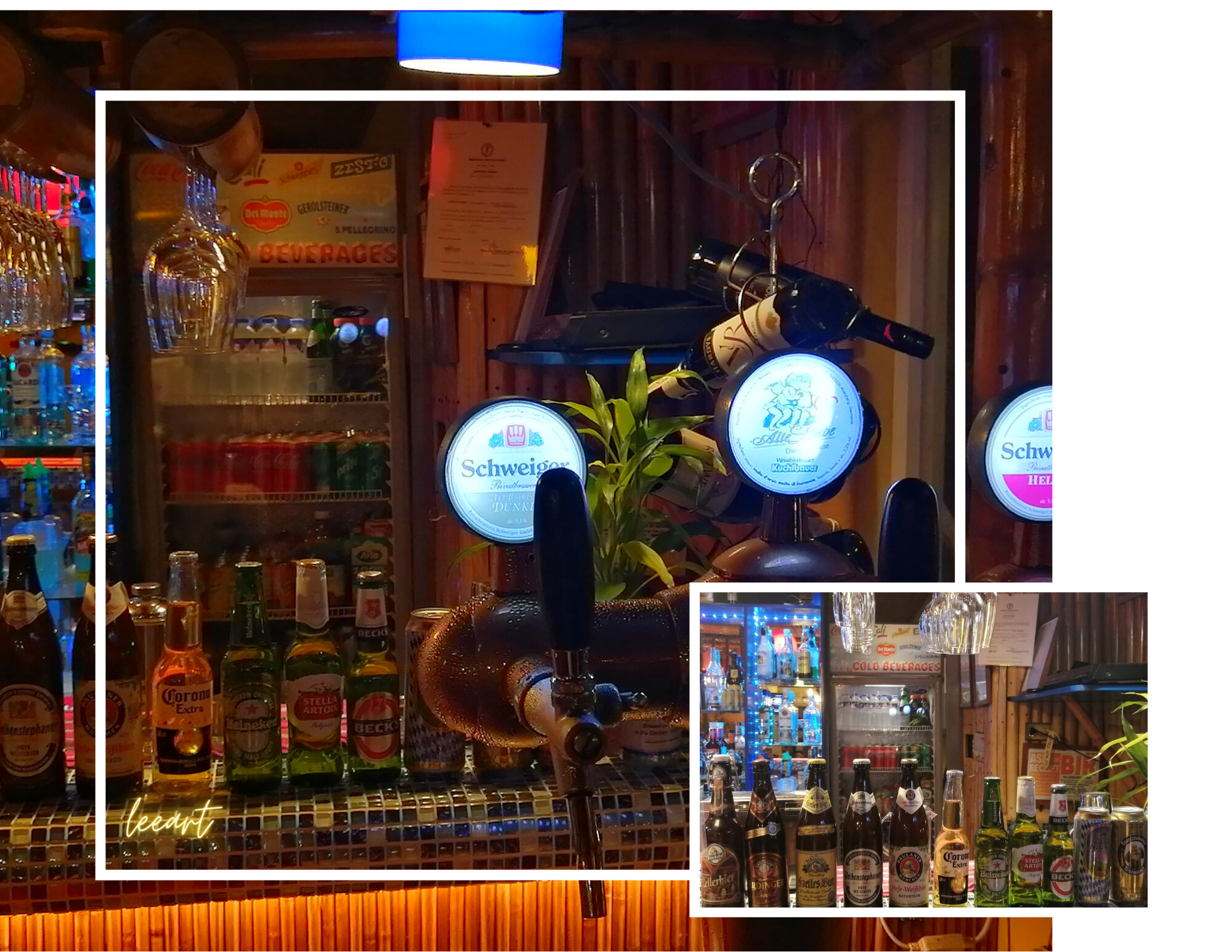 We would have wanted to sit in one of the huts near the band but all were occupied or reserved so we had to dine inside the bistro.