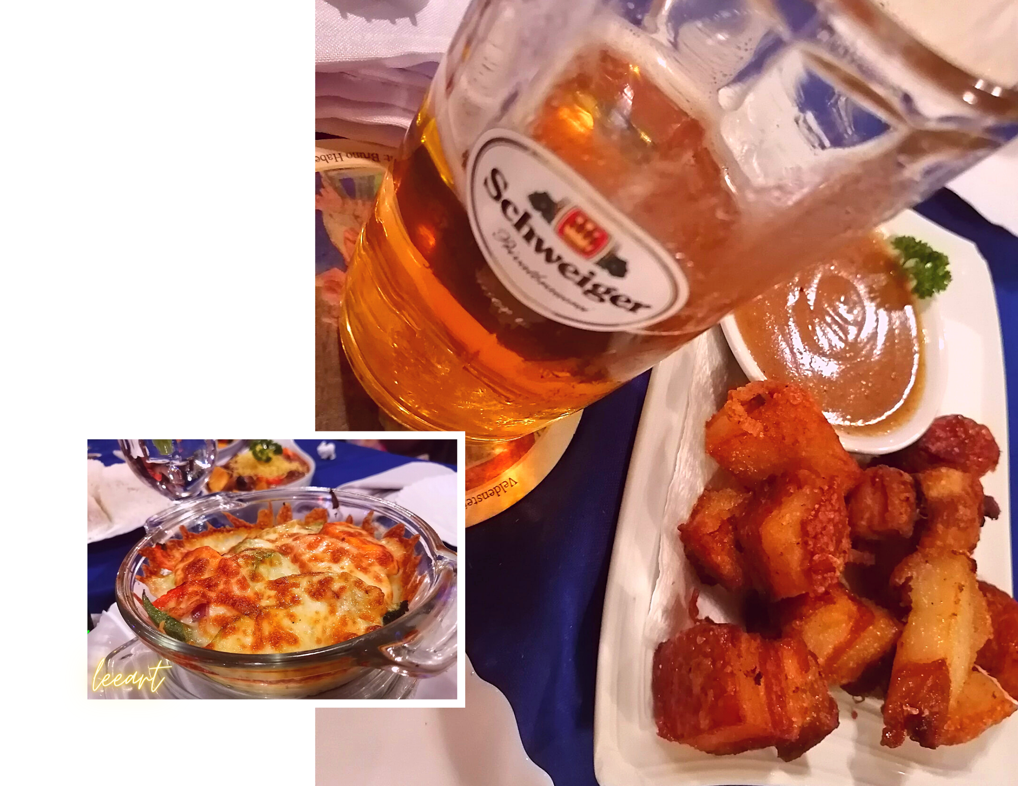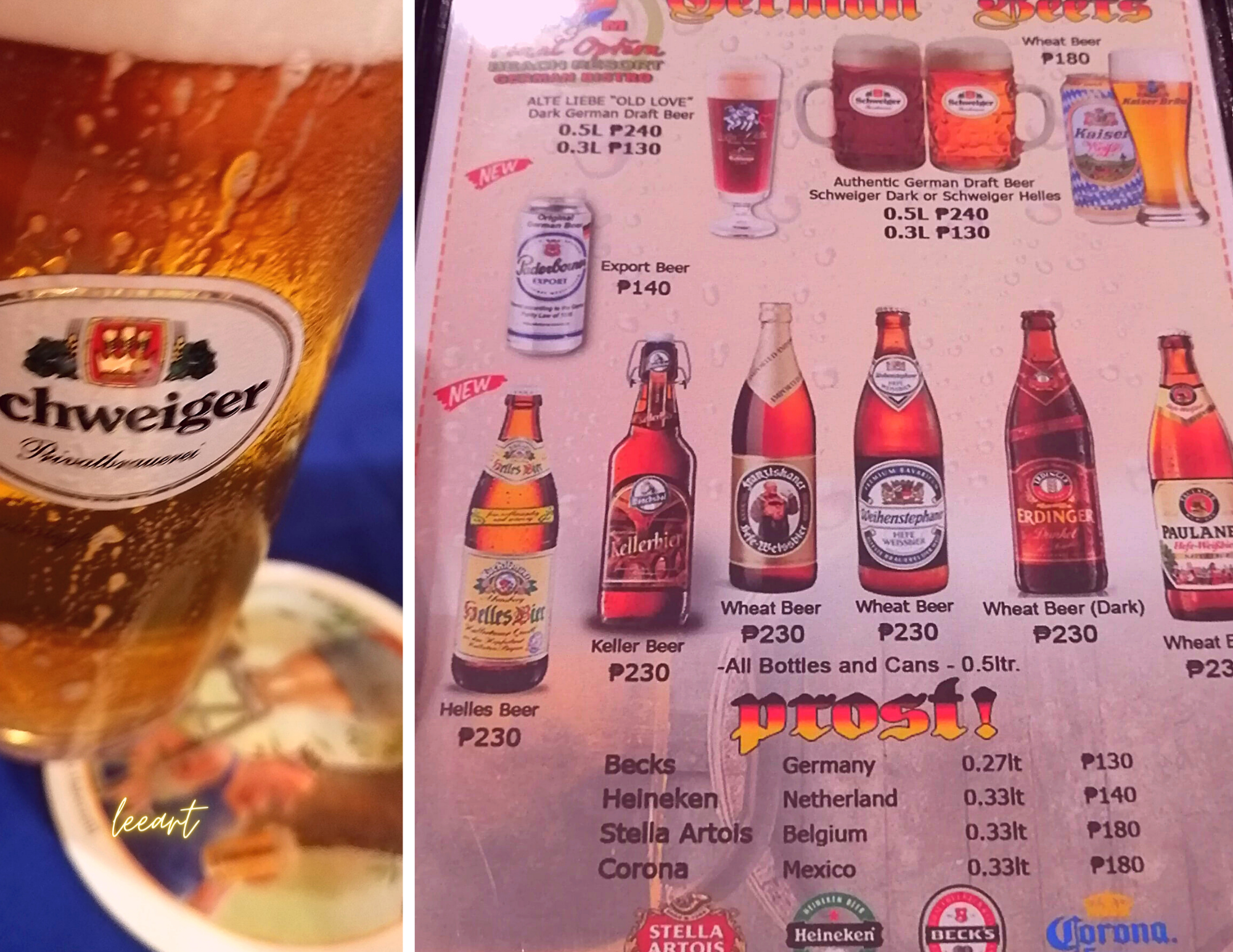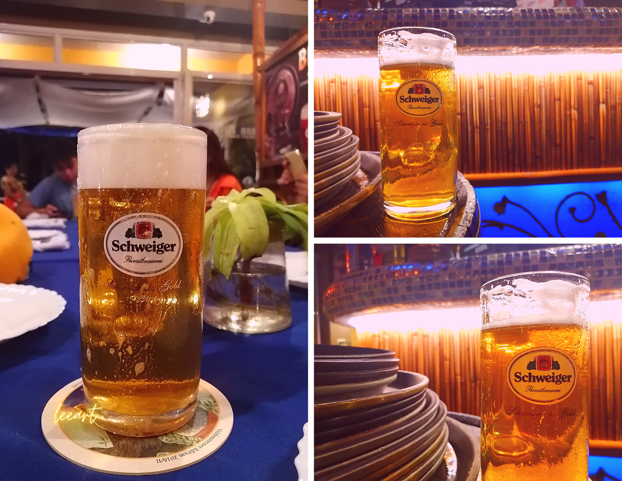 The thing with not blogging right away is that I forgot details. There were two options for their draft beer: Schweiger Dark and Schweiger Helles. You can choose between 0.05L or 0.03L. I definitely remember ordering 0.03L but I can't remember if it was Dark or Helles that I ordered. I remember that the beer has a light taste to it and some sweetness too. That costs PHP130.00 (USD2.20)
