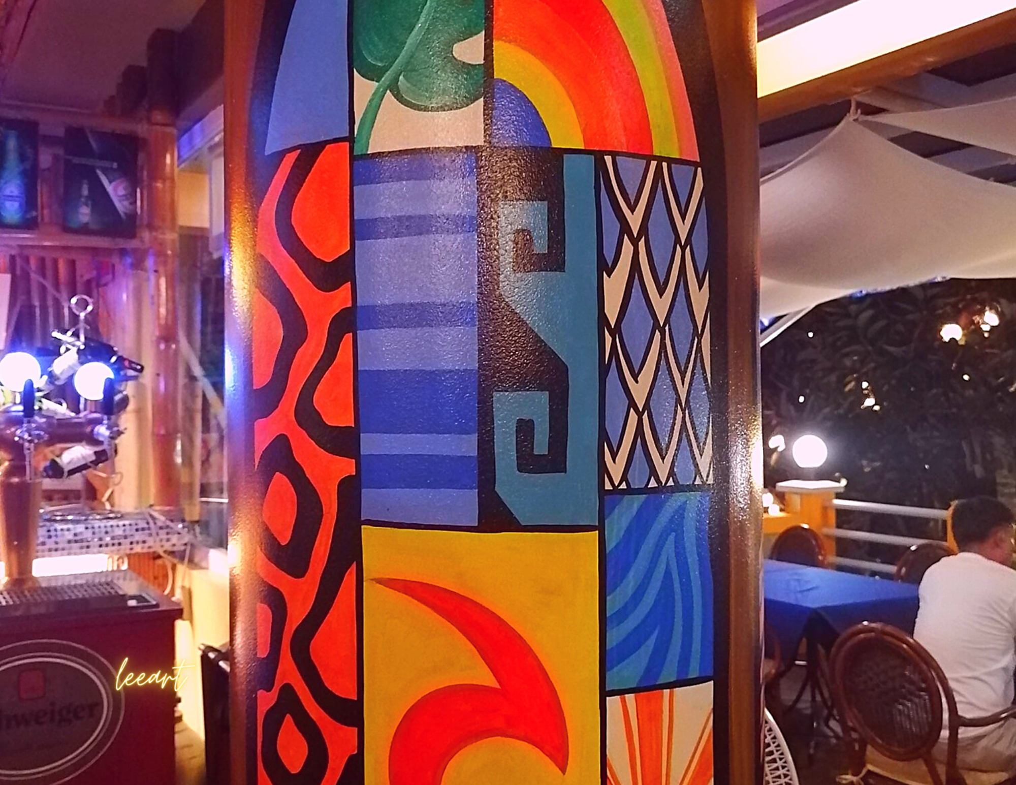 This colorful pole is also attractive. It is at the center of the bistro. That's one way to keep it interesting.