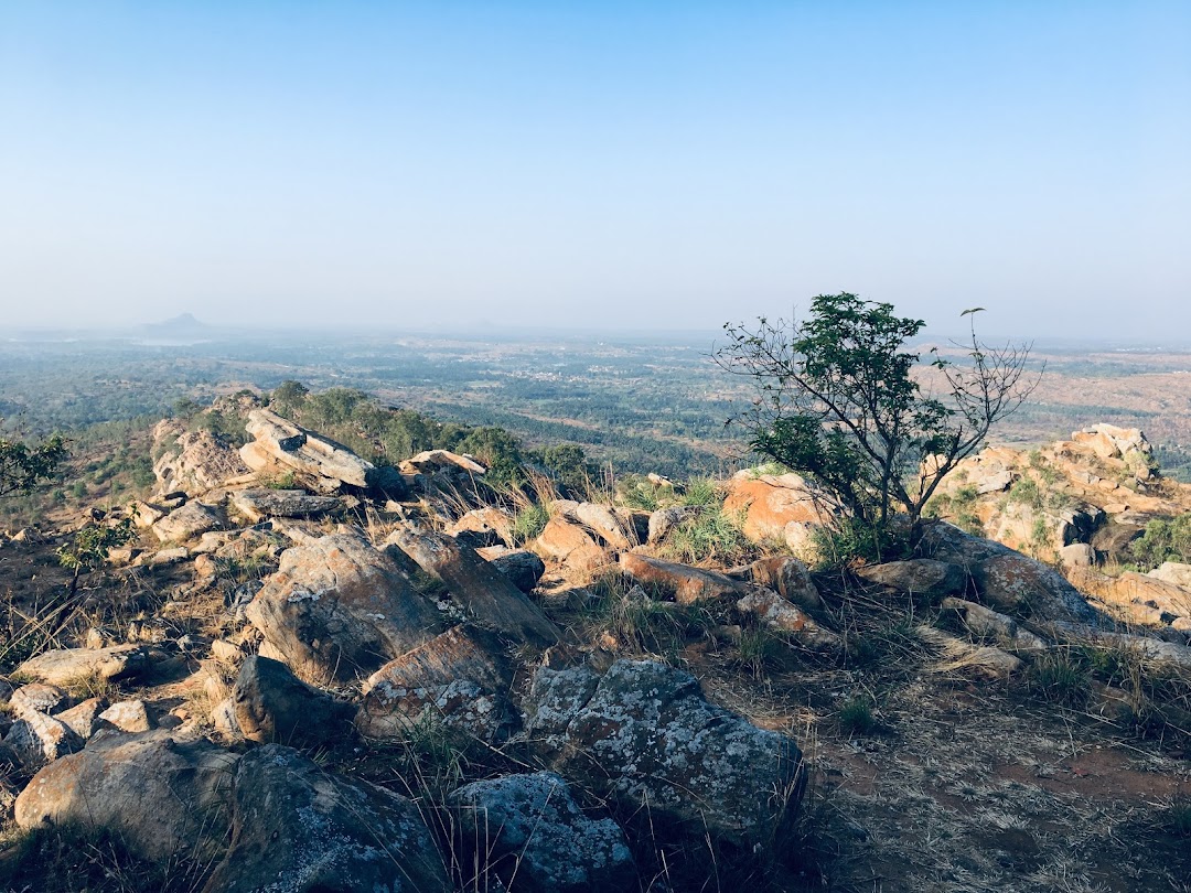 Since Melkote is situated on the hills of Yadugiri, the scenery from here shows an amazing bird’s view of the natural surroundings - the sky, hills, and glimpse of green rocky hill terrain below.