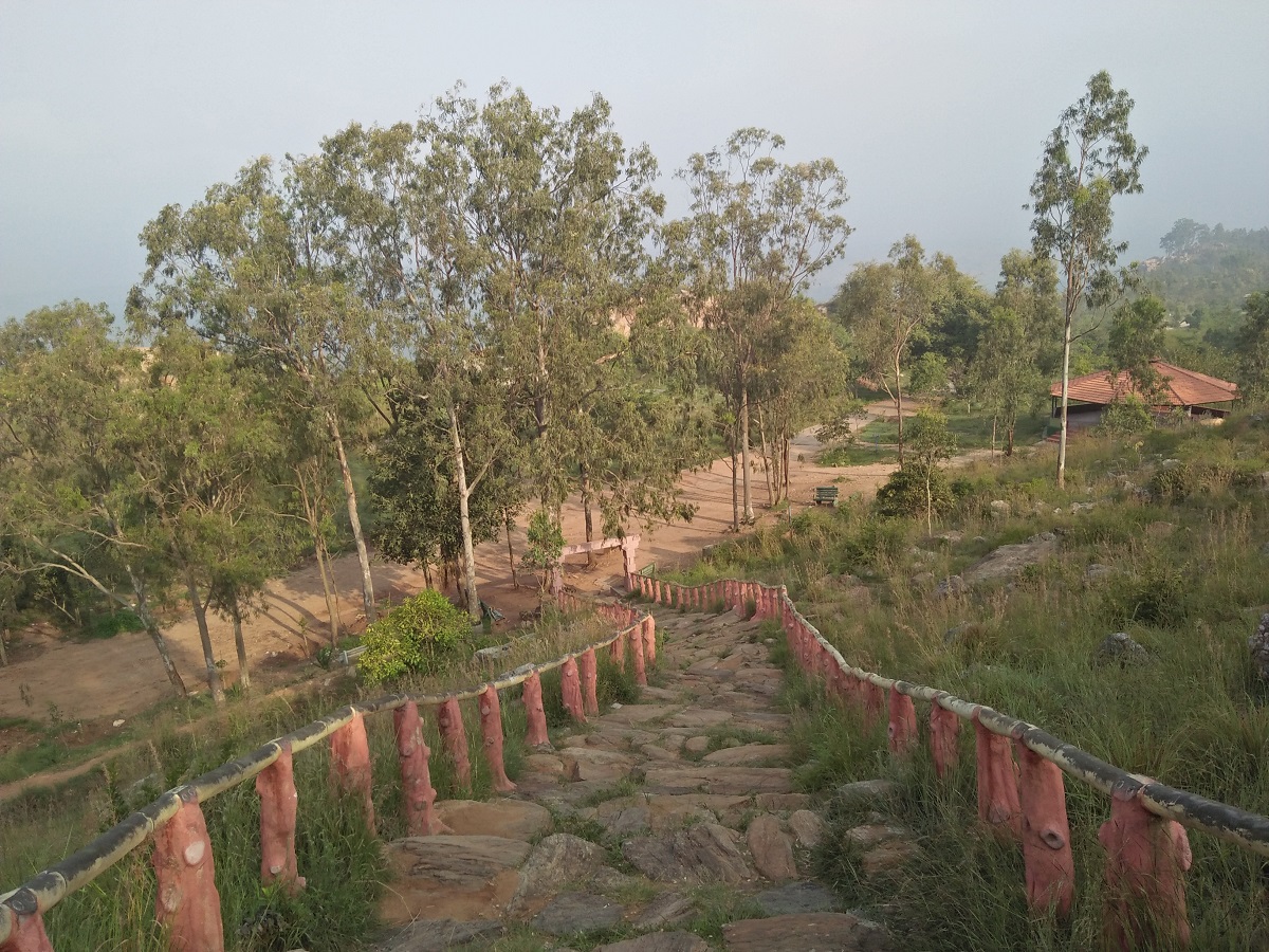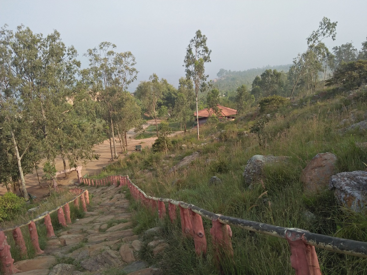 From the Danushkoti Top Garden to the Danishkoti spot, up a flight of winding stairs