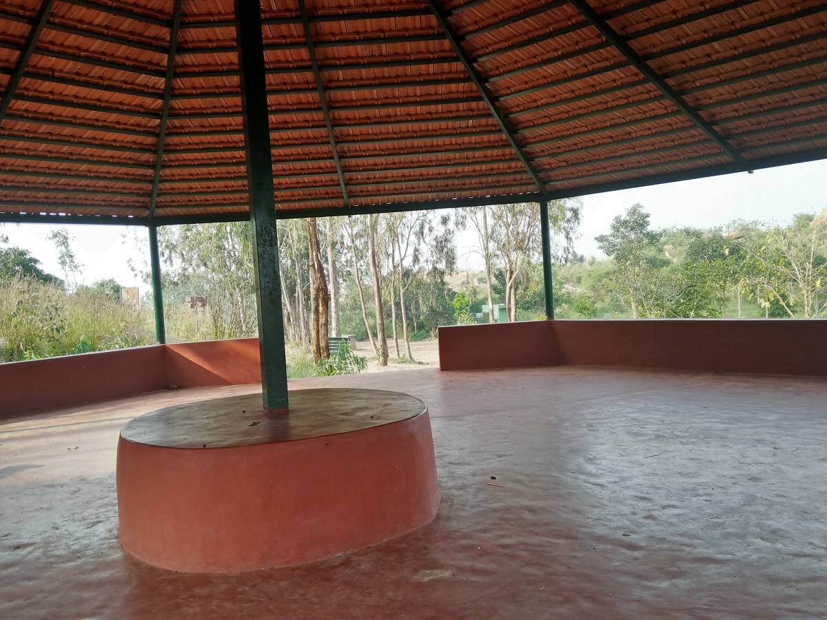 Open stone pillared enclosure approaches way ahead as a neat outdoor chilling point!!