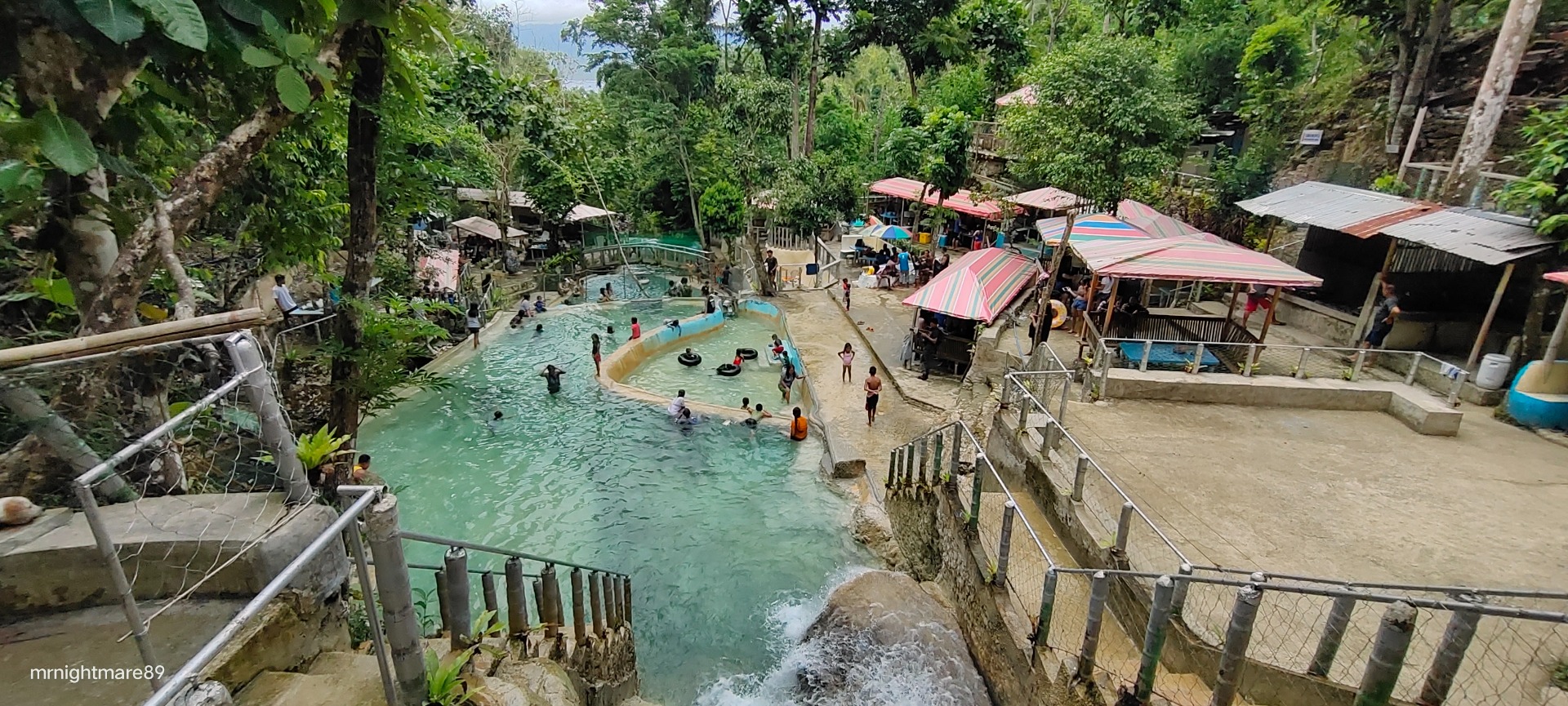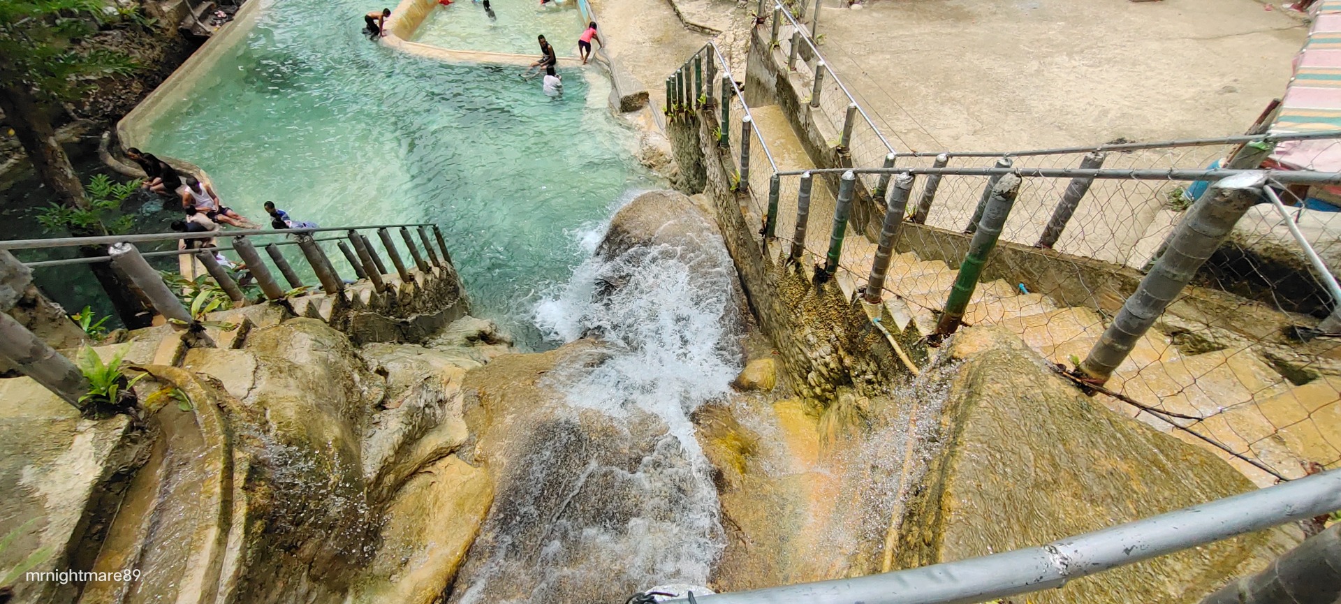 People found out how nice the creative architectural place was. Most of the falls you see are man-made. They created falls and pools thanks to the strong flow of water from the river above.