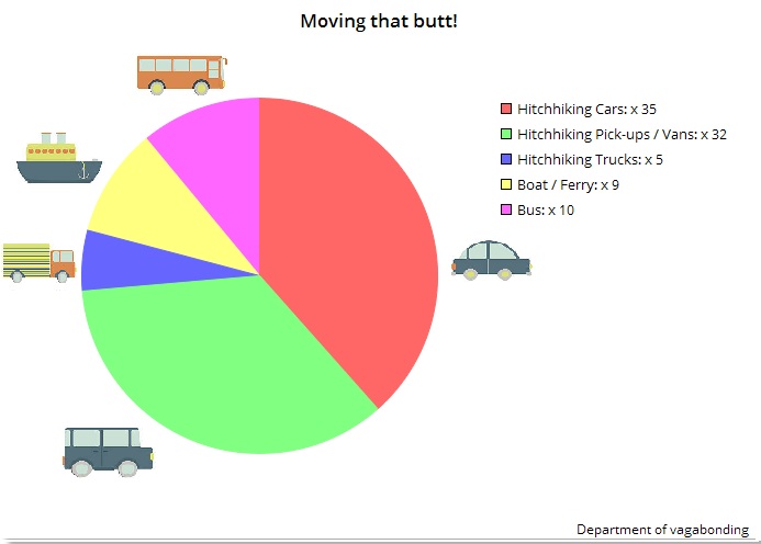 Still shameful those bus rides! But on my defense, I have to say they were necessary to scape sketchy places and mostly they were cheap local buses, so.. whatever. The meaningful take is that 87% of the rides represented a local I met, which is the cherry on the cake about hitchhiking ― uncountable the number of people you meet!