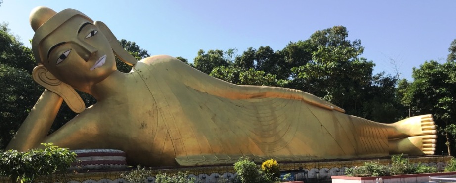 Basically, it is on the way to Cox's Bazar at Ramu and it is just five minutes car drive from the highway and easy to find. You'll be welcomed by a huge gate and after stepping up more than 50 steps you'd fin the 100 feet golden statue of laying Gautam Buddha.