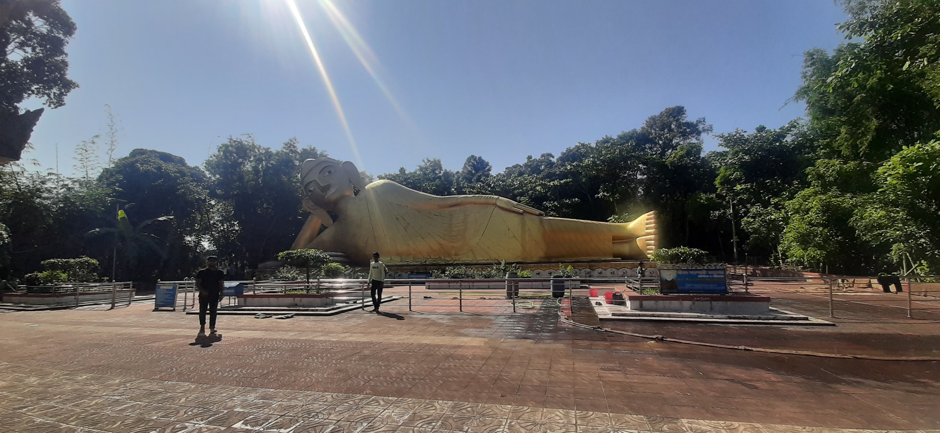 You would love this place as it is close to your way and got both green shade of trees, the statue, and the steps to reach the statue. Also, the golden decorative part of the temple building and statue would attract you.
