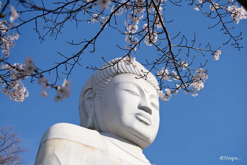 Walking to the other side of temple, you can see a majestic big sitting Kannon statue and a sleeping buddha statue.