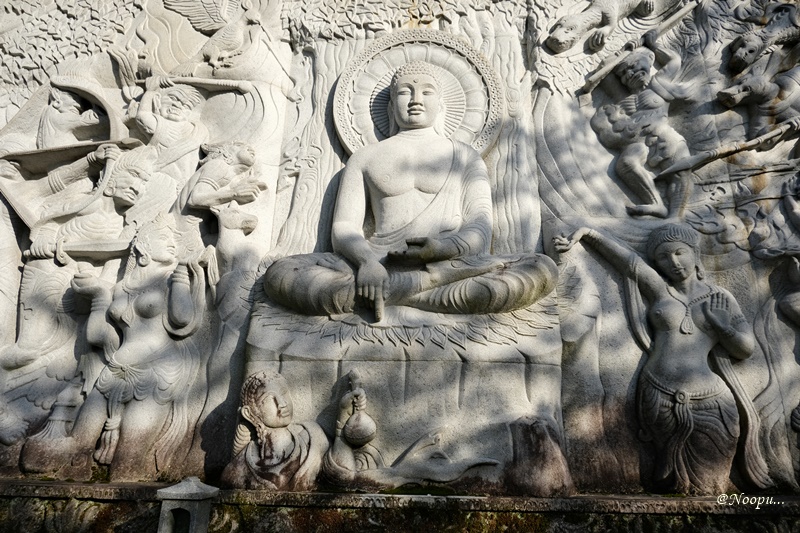 The long wall has an architecture that tells about 9 episodes of Buddhist history.